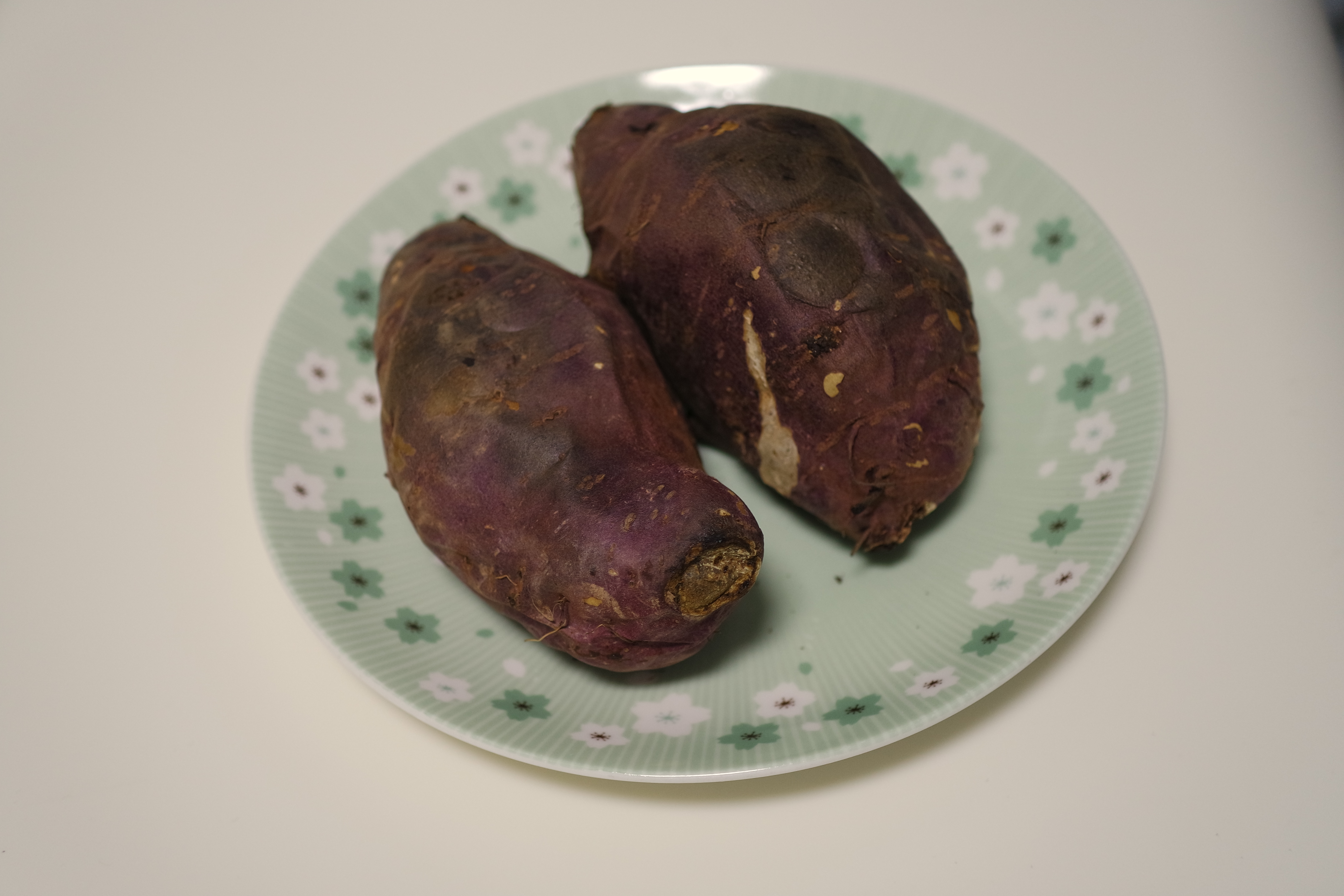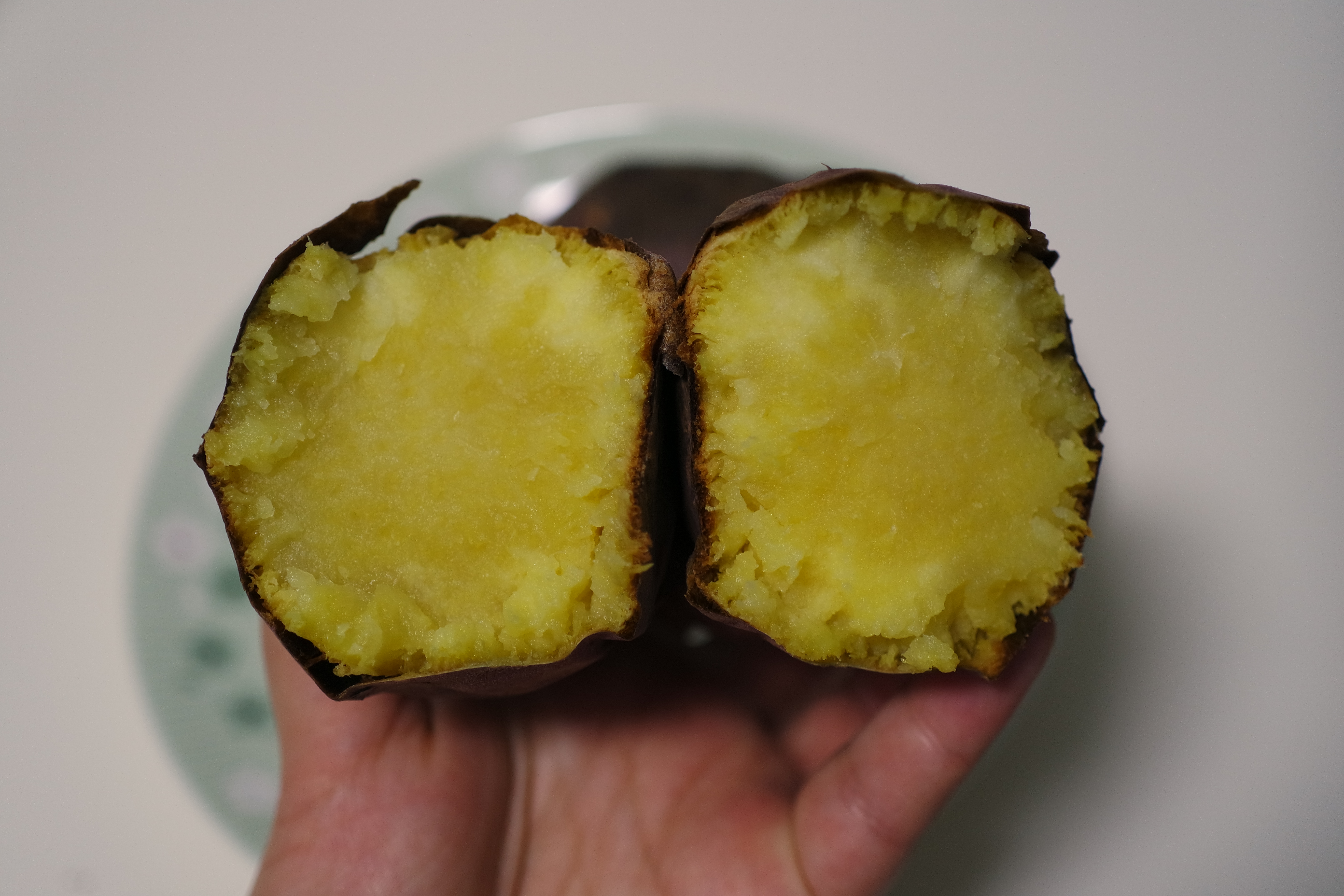 고구마 한 개를 반으로 갈라보았다.
