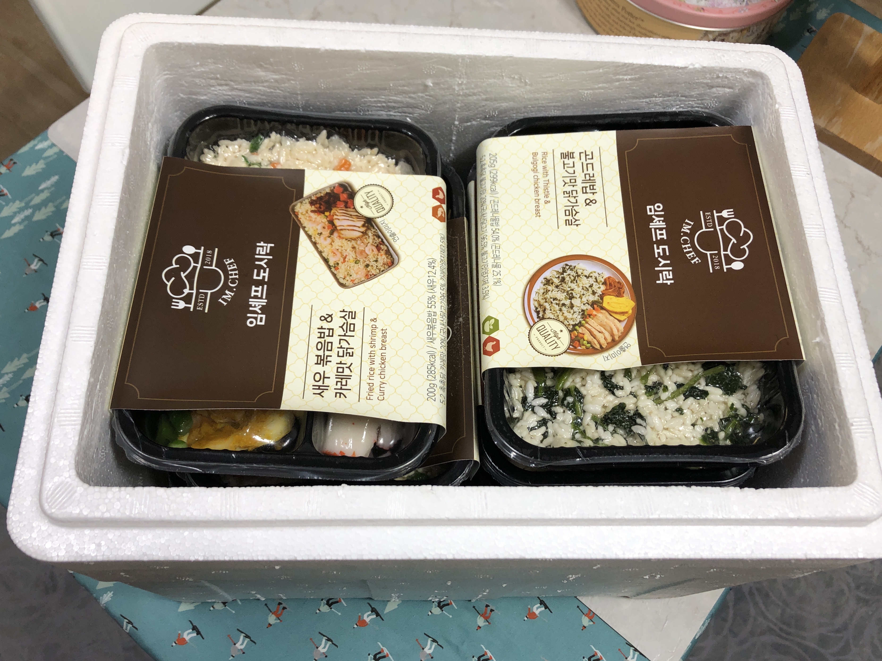 왼쪽은 새우 볶음밥 & 카레맛 닭가슴살 도시락이고