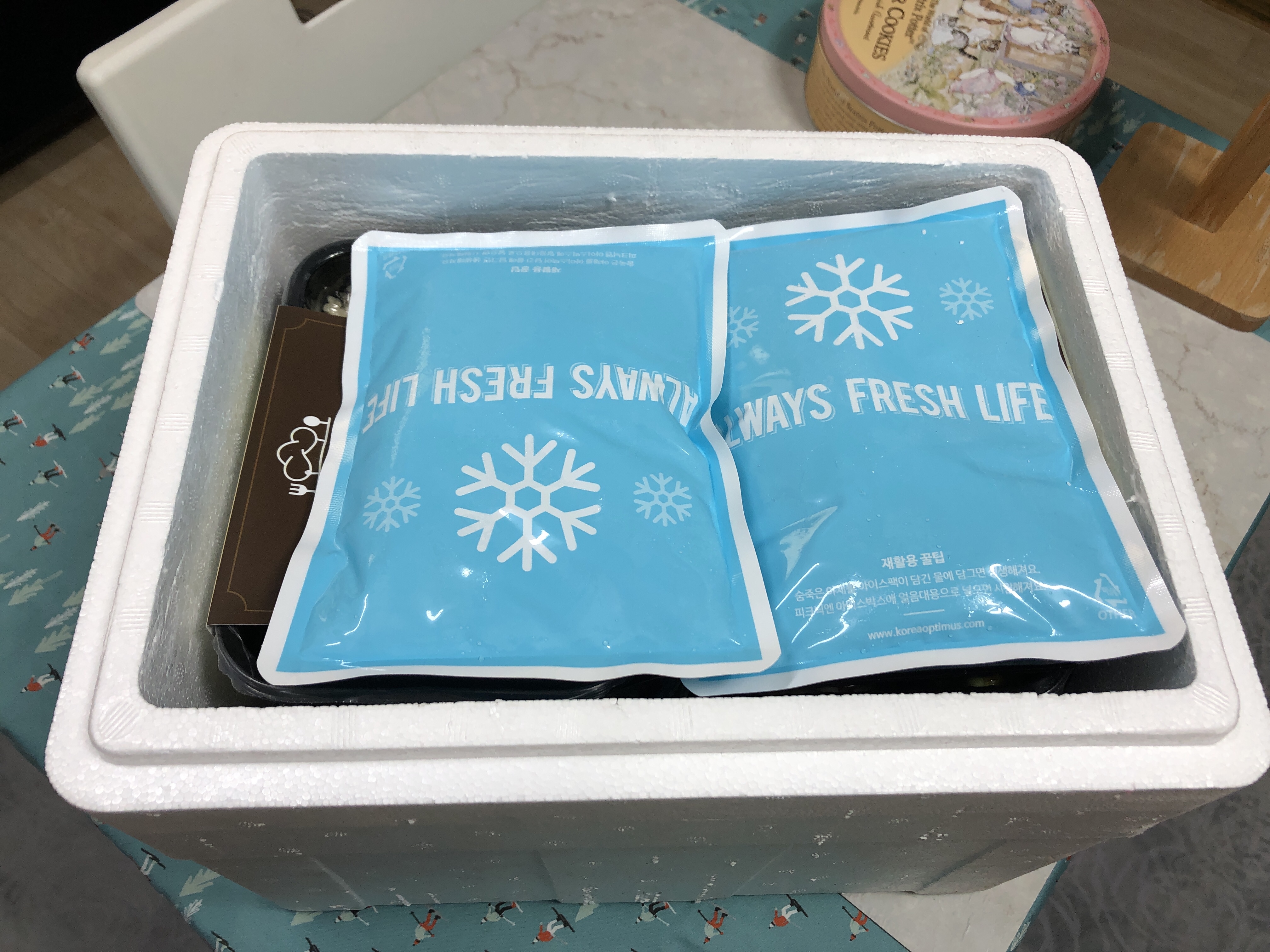 그 밑에는 아이스팩이 2개 올려져 있다.