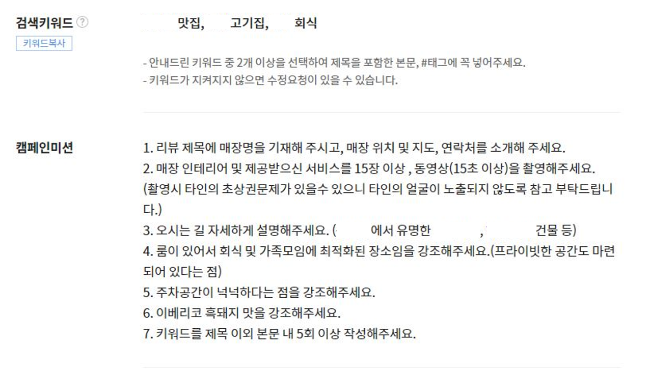 캠페인 미션과 검색 키워드를 블로그 포스팅 시 지켜줘야 하는데