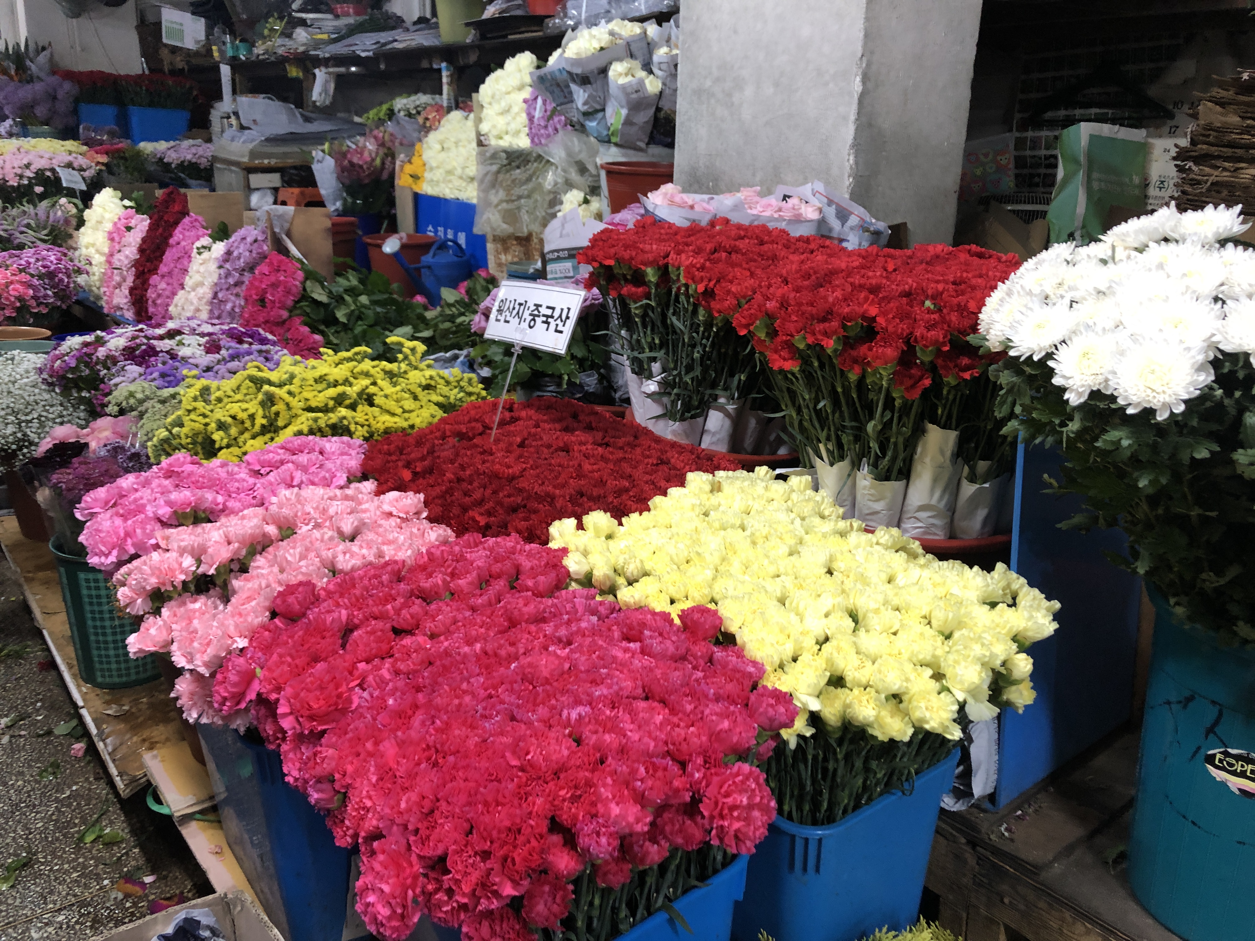 오늘 남대문 꽃시장에 방문했었다. 남대문 꽃시장을 알게 된 이후 여러 번 갔었는데 갈 때마다 기분이 좋아진다. 이번엔 곧 어버이날이라서 부모님 댁에 가져갈 카네이션을 구입하기 위해 방문했다. 꽃시장이 가장 바쁜 시기가 졸업식과 입학식이 많은 2-3월과 어버이날 및 스승의 날이 있는 5월이라고 한다. 올해 2-3월은 코로나 19 바이러스로 인해 대부분의 졸업식 및 입학식 행사가 취소되어 꽃시장이 많이 어려웠다고 한다. 이제 5월로 넘어가면서 국내에서 발생하는 코로나 19 바이러스 확진자가 줄어들어 꽃시장이 예년만큼 붐비는 모양이었다. 그동안 한가한 꽃시장만 보다가 엄청난 인파에 놀람.