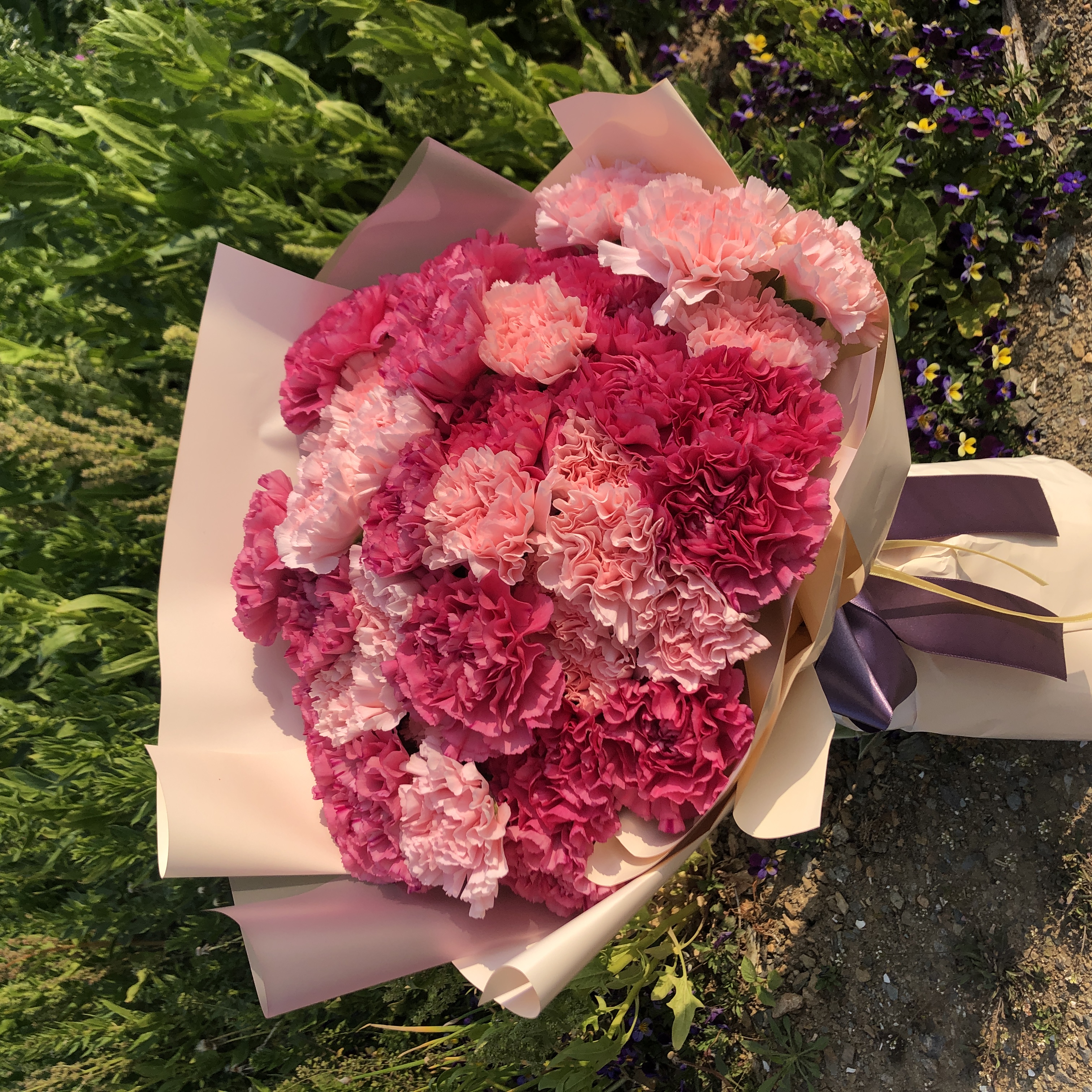 보통 카네이션은 화분이나 바구니로 선물을 많이 하는데 나는 특별하게 꽃다발로 준비해보았다. 부모님이 매우 좋아하셔서 기뻤다. 그리고 남대문 꽃시장에서 선물용 꽃을 구입할 때는 포장까지 가능한 꽃집에서 구입하는 게 좋다. 따로 포장 안 하고(신문지에 꽃을 둘둘 말아주심) 집에서 바로 화병에 꽂을 거면 아무 곳에서나 저렴한 곳에서 사면되는데 누군가에게 포장해서 선물할 거면 포장도 같이 하는 집에서 구매하면 포장을 더 저렴하게 할 수 있다.