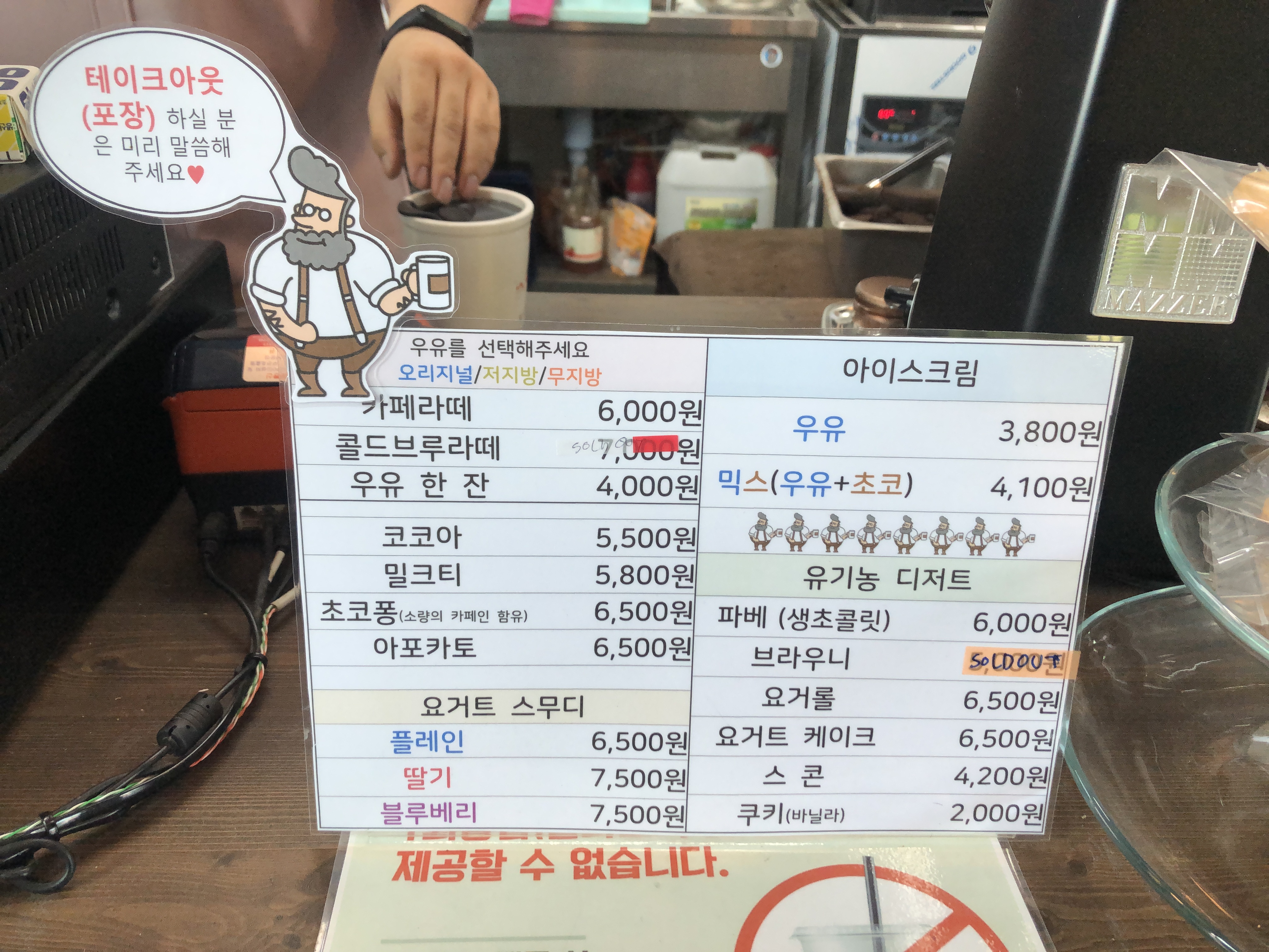 뭘 먹을지 고민하며 메뉴판을 자세히 보니 우유가 들어가지 않는 메뉴는 없는 것 같았다. 주문 후 번호표를 받고 기다렸다.
