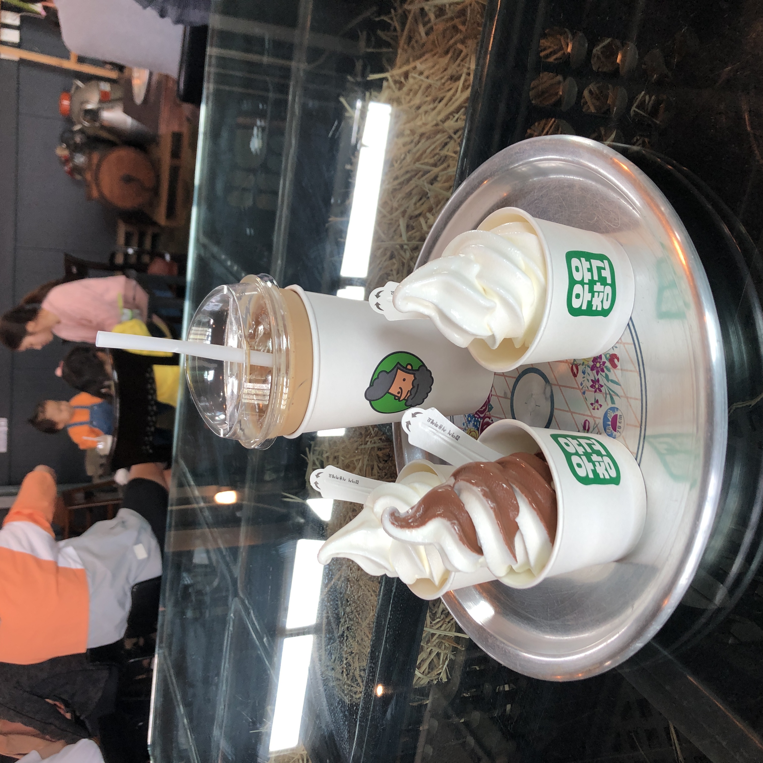 날이 더워서 아이스크림이 쉽게 녹으니 빨리 먹어야 한다. 카페에서 방송이 나오는 걸 들어보니 체험도 할 수 있는 것 같았다. 체험은 목장의 특색을 살린 치즈 만들기, 아이스크림 만들기, 버터 만들기 등이 있고 사전 예약을 해야 하는 듯. 왠지 어린이 손님이 엄청 많더라니... 체험하러 많이 온 듯. 방송 나오고 어린이들 쑥 빠져나갔다.
