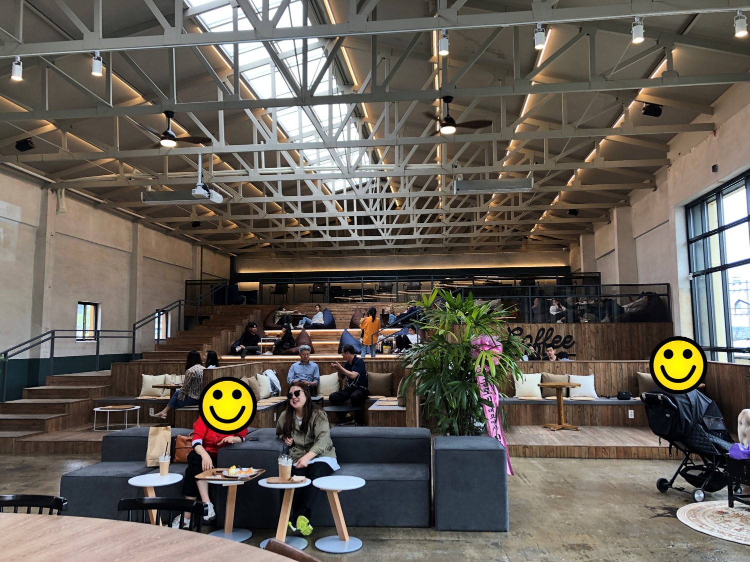 카페 '유양창고'는 실내가 아주 널찍했다. 천장이 높아서 그런지 더 넓어 보였다. 전체적으로 앤틱한 우드톤이었다. 그리고 대형 창문으로 인해 채광이 아주 좋았다. 햇살 맛집임!!!