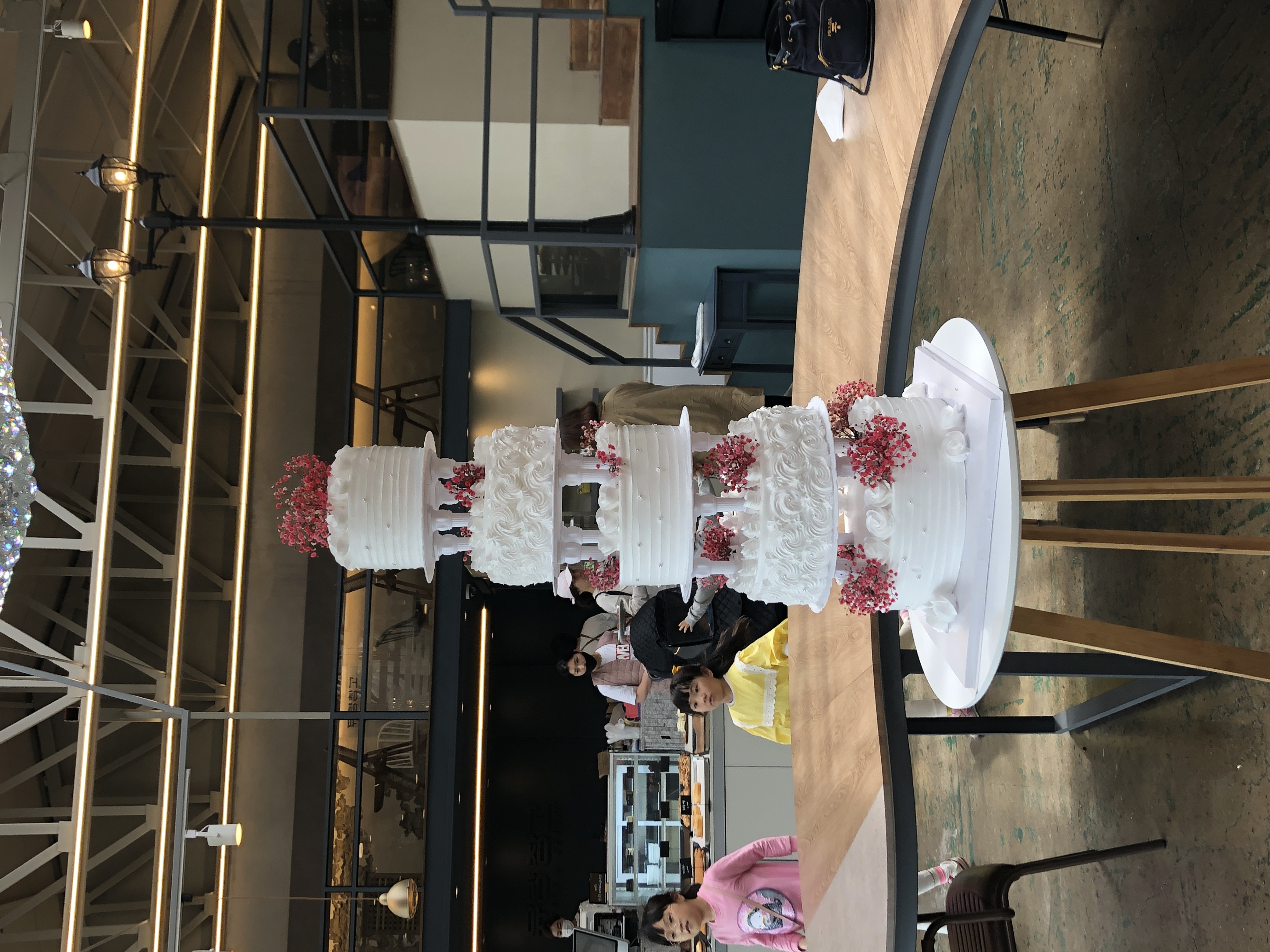 이 케이크는 오픈 기념 케이크라고 한다. 이 5단 케이크가 진짜인지 가짜인지 궁금해하고 있는데 옆자리 아이들도 궁금했는지 다가가서 만져보더라... ㅎㅎ 아이들이 손에 묻어난 크림을 빨아먹는 걸 보니 진짜 케이크인 게 분명했다. 그런데 저 케이크 옮기던 분이 한 손으로 너무 가볍게 옮겨 놓고 가셔서 신기했다. #유양창고