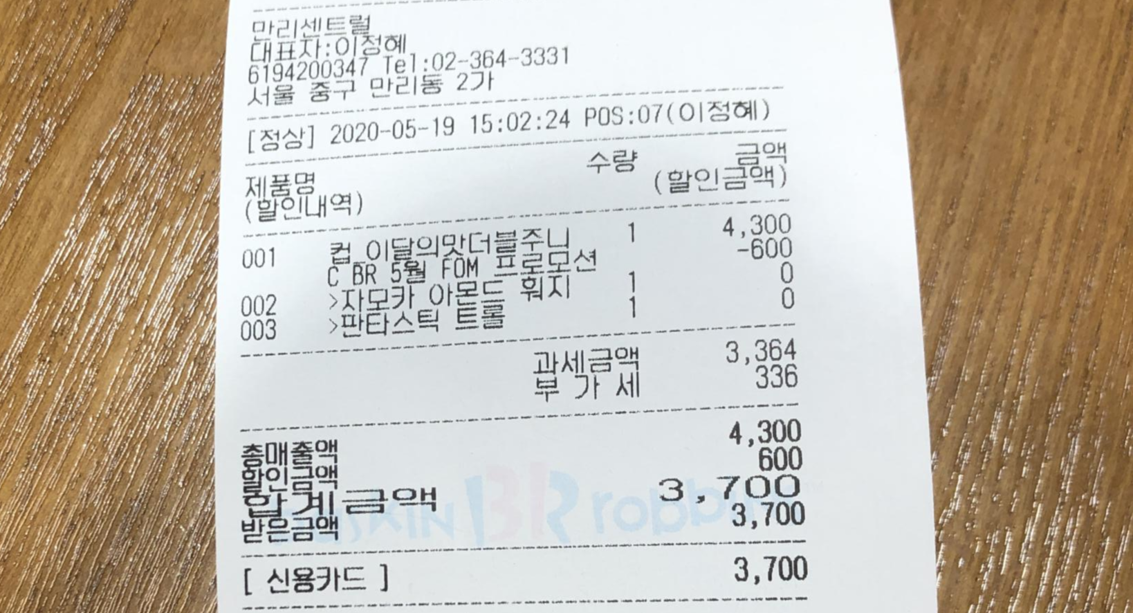 이달의 맛을 주문하면 할인이 된다는 것도 처음 알았다. 원래 더블주니어가 4,300원인데 이달의 맛 할인 600원 받아서 3,700원 지불했다.