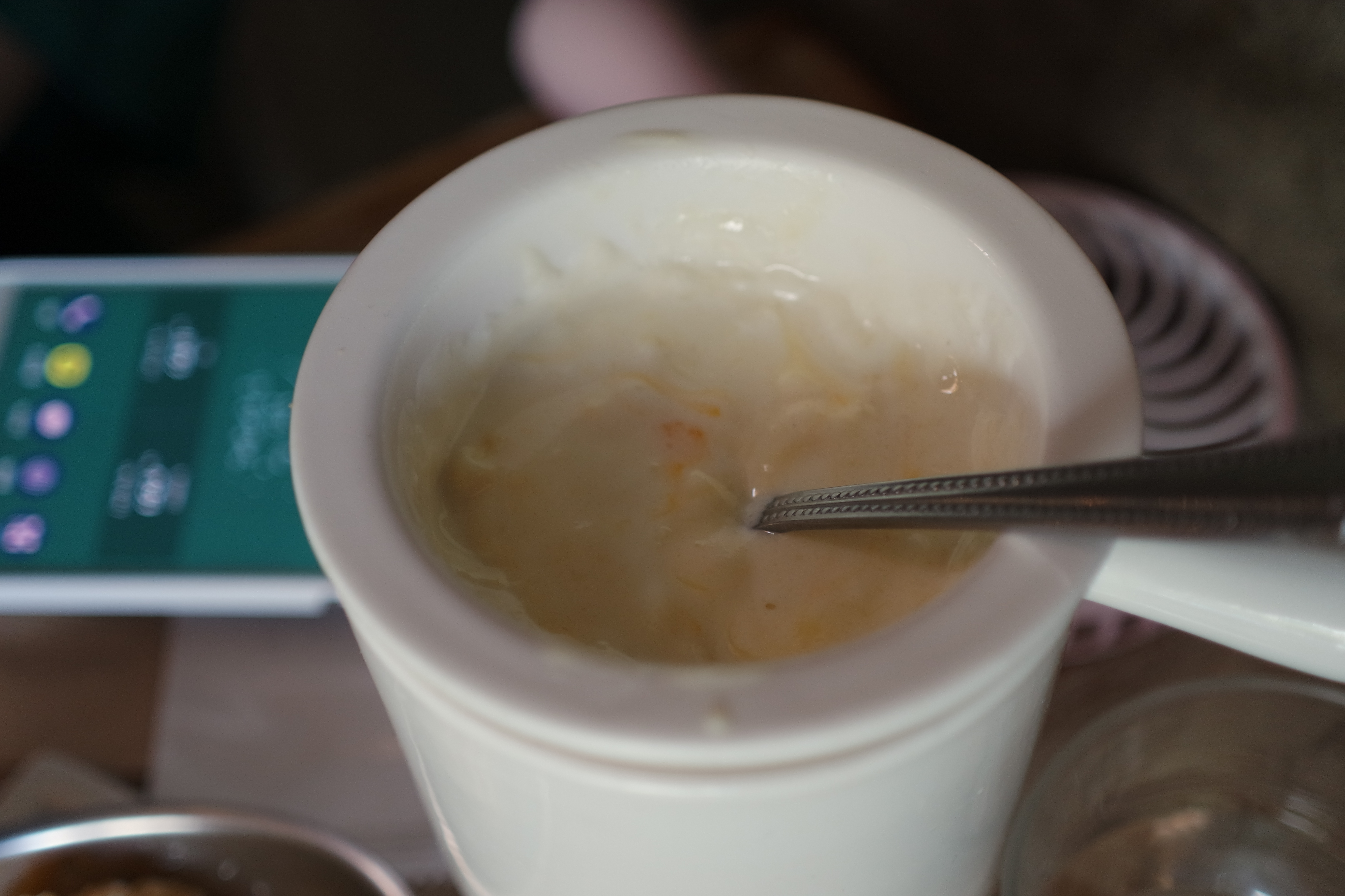 식전 빵이 나왔다. 인원수대로 2개 제공되었다. 치즈가루가 듬뿍 묻어있는 빵이었는데 부드러운 식감이었고 치즈가루 때문에 짭짤해서 입맛 돋우기 좋은 식전 빵이었다.