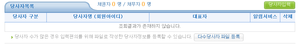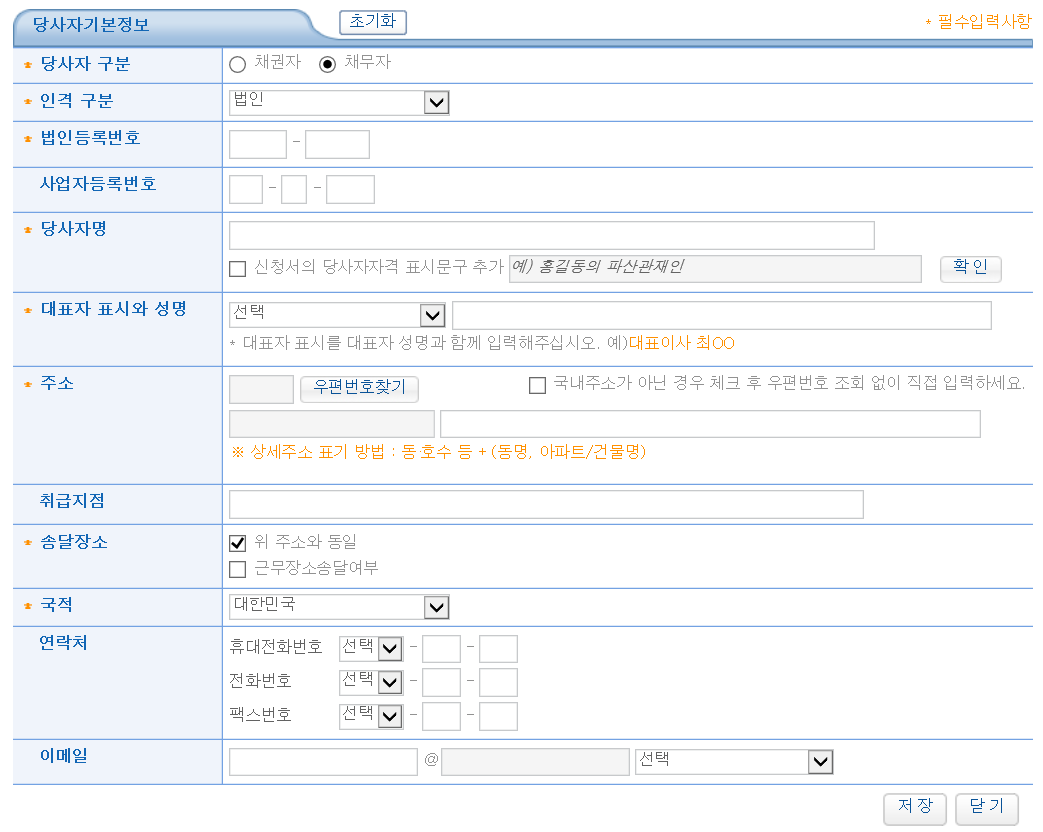 - 당사자 구분 : 채무자. ㅅㅎㅈㅌㄱㄹ의 정보를 입력.