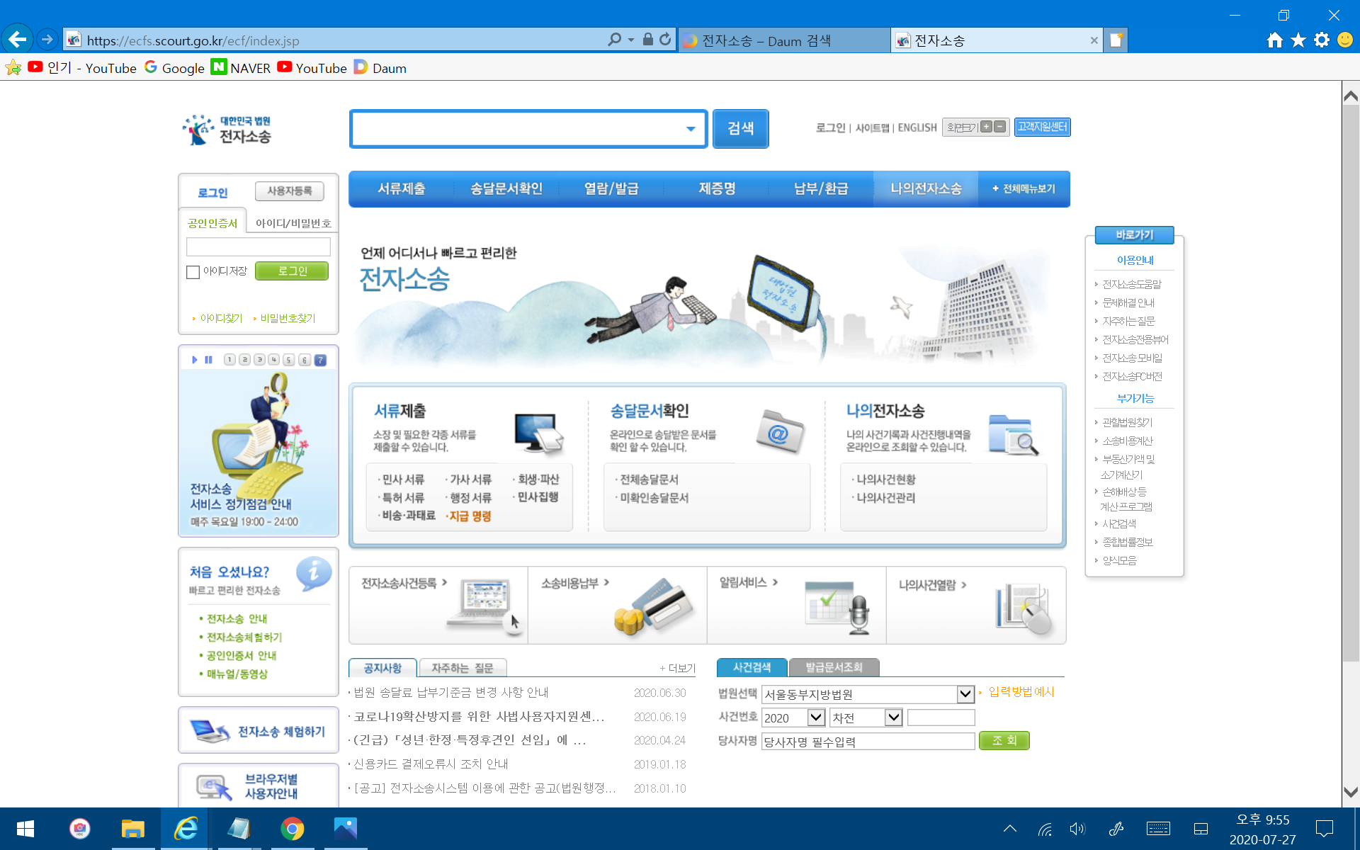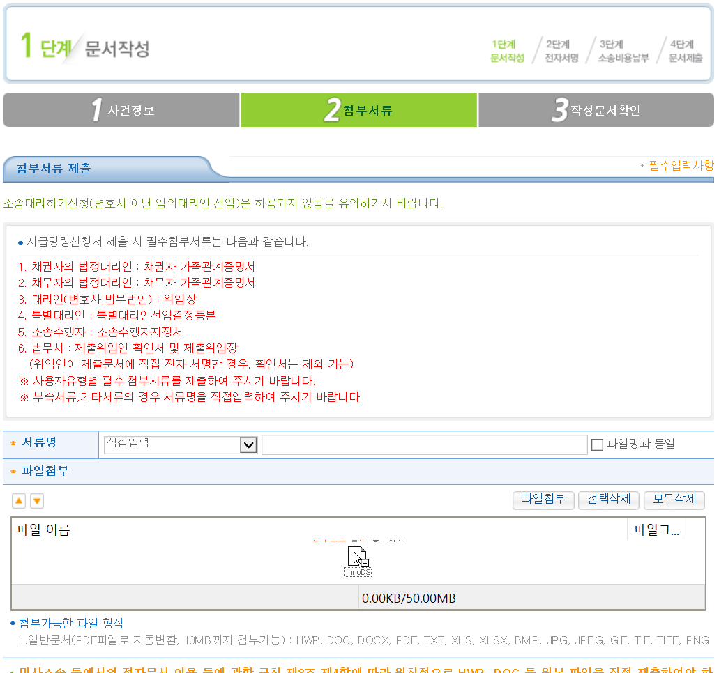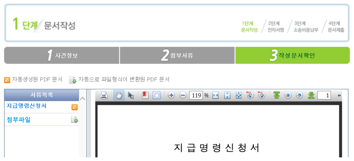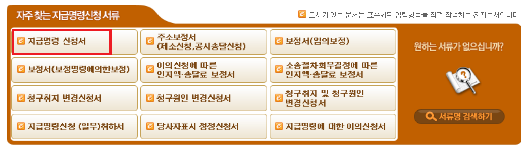 공인인증서 필수 : 없으면 지급명령 작성 자체가 불가능.
