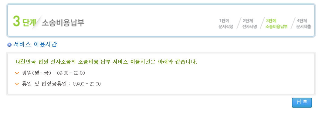 소송비용 납부 화면에서 납부 후 문서 제출하면 끝이다. 소송비용 납부는 이용시간이 정해져 있으니 참고 바람.