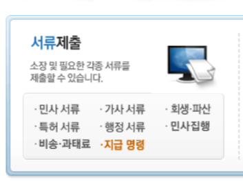 전자소송 사이트에 접속하여 공인인증서 로그인 후 중간에 [지급 명령] 클릭한다.