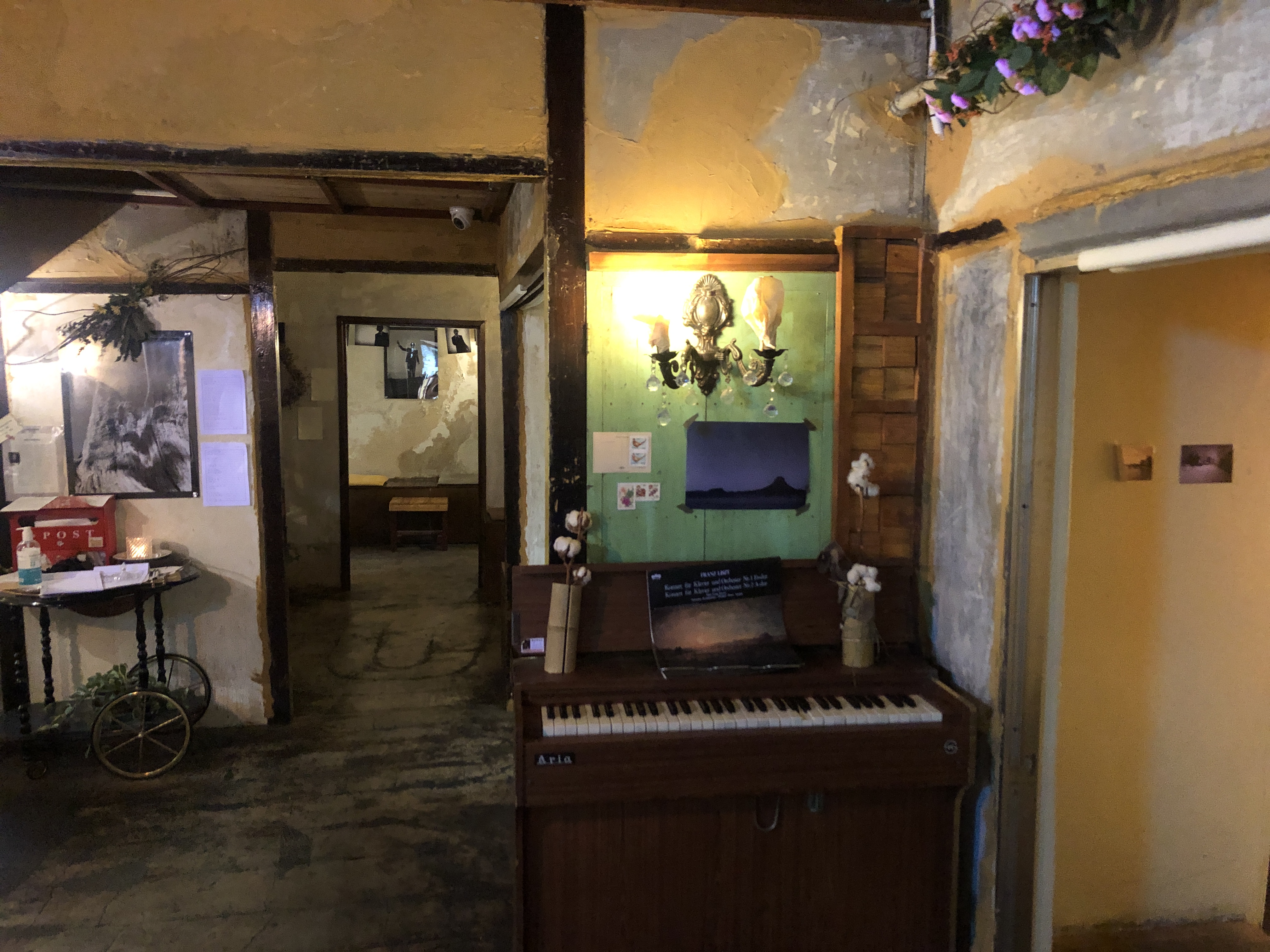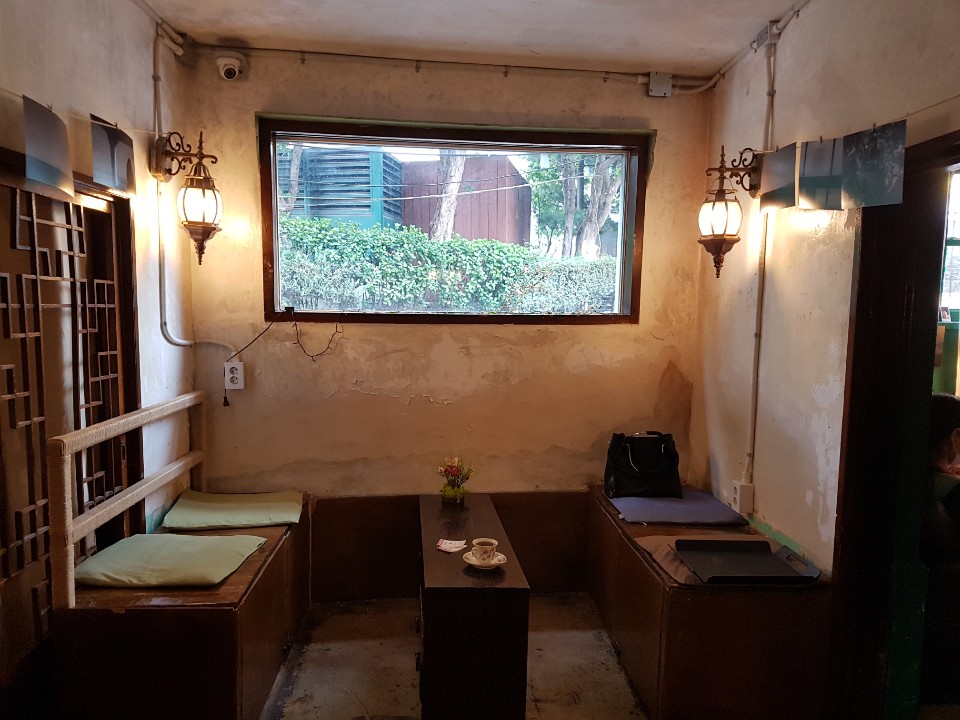 주문하고 자리로 돌아왔다. 그제야 카페 내부 인테리어가 눈에 들어왔다. 구옥을 리모델링해서 빈티지하게 꾸며 놓았다. 곳곳에 보이는 소품들도 다 레트로 했다. 오르간(풍금인가?)도 보이고 80-90년대 유행하던 가요 CD와 LP들이 정신없이 쌓여 있었다. 그리고 빈티지함을 의도한 것인지 진짜 낡은 것인지 헷갈리는 벽면들... 나는 이것 또한 인테리어라고 생각하기로 했다. 오래된 건물이라 손을 보긴 했지만 구조가 완전 옛날식이 었다. 천장이 낮고 벽도 많았다.