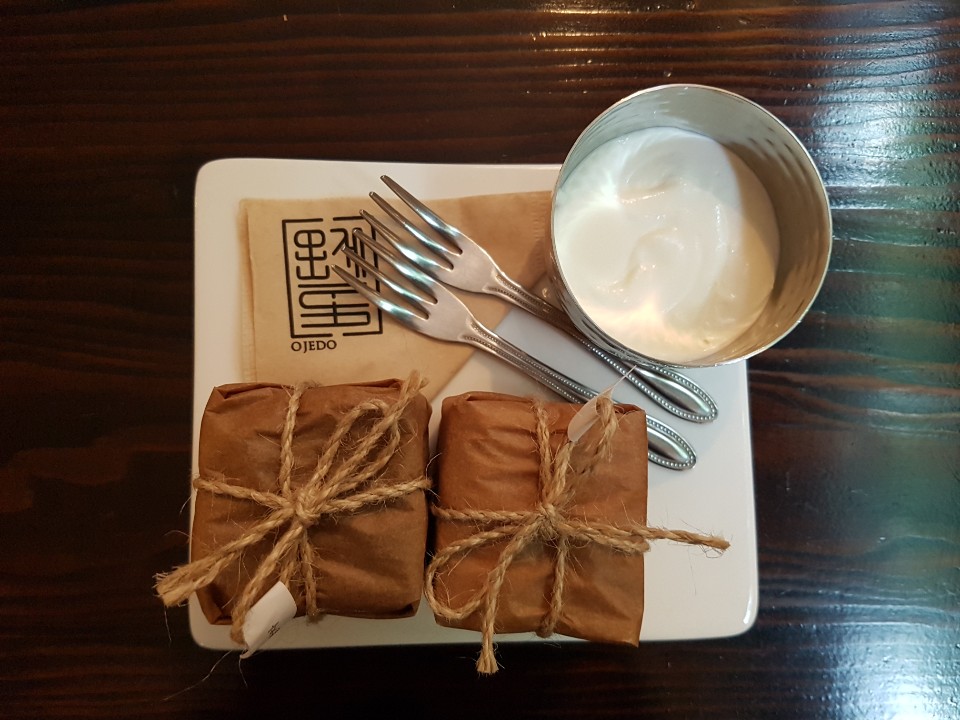 오제도 치즈케이크는 포장이 신기했다. 나는 이걸 보고 메주 생각이 났다. 귀여운 메주 두 덩이 느낌. ㅋㅋ