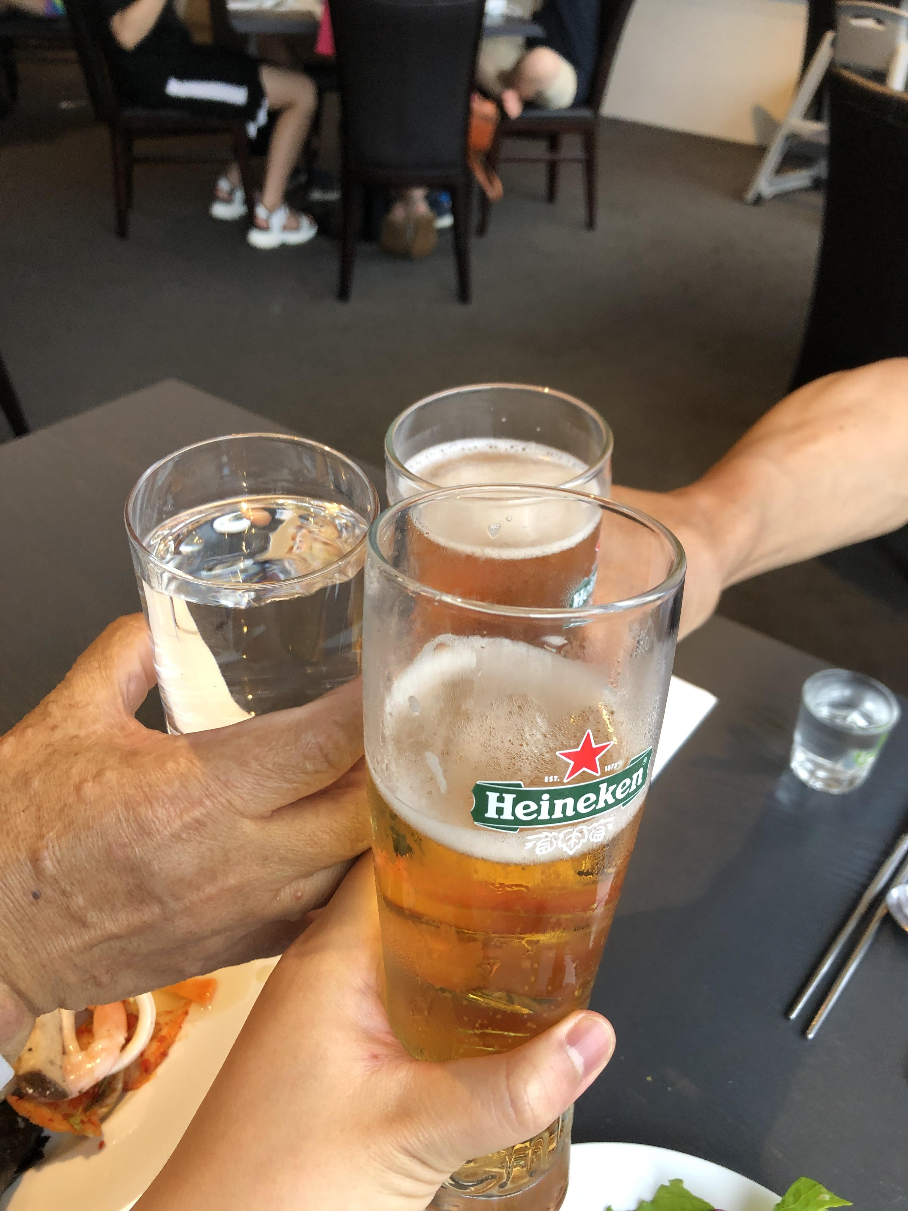 생맥주는 카스였는데 하이네켄 잔에 따라주심. 큰 잔은 하이네켄잔이고 작은 잔은 테라 잔이더라. 카스 전용잔은 없는 걸까? 궁금했다. 아, 그리고 디너 뷔페 가격이 성인 69,000원으로 알고 예약을 했는데 숙박 당일 스페셜 할인 특가로 55,000원에 이용할 수 있었다. 개이득!!ㅎㅎ 부모님이랑 좋은 저녁시간을 보낼 수 있어서 좋았다.