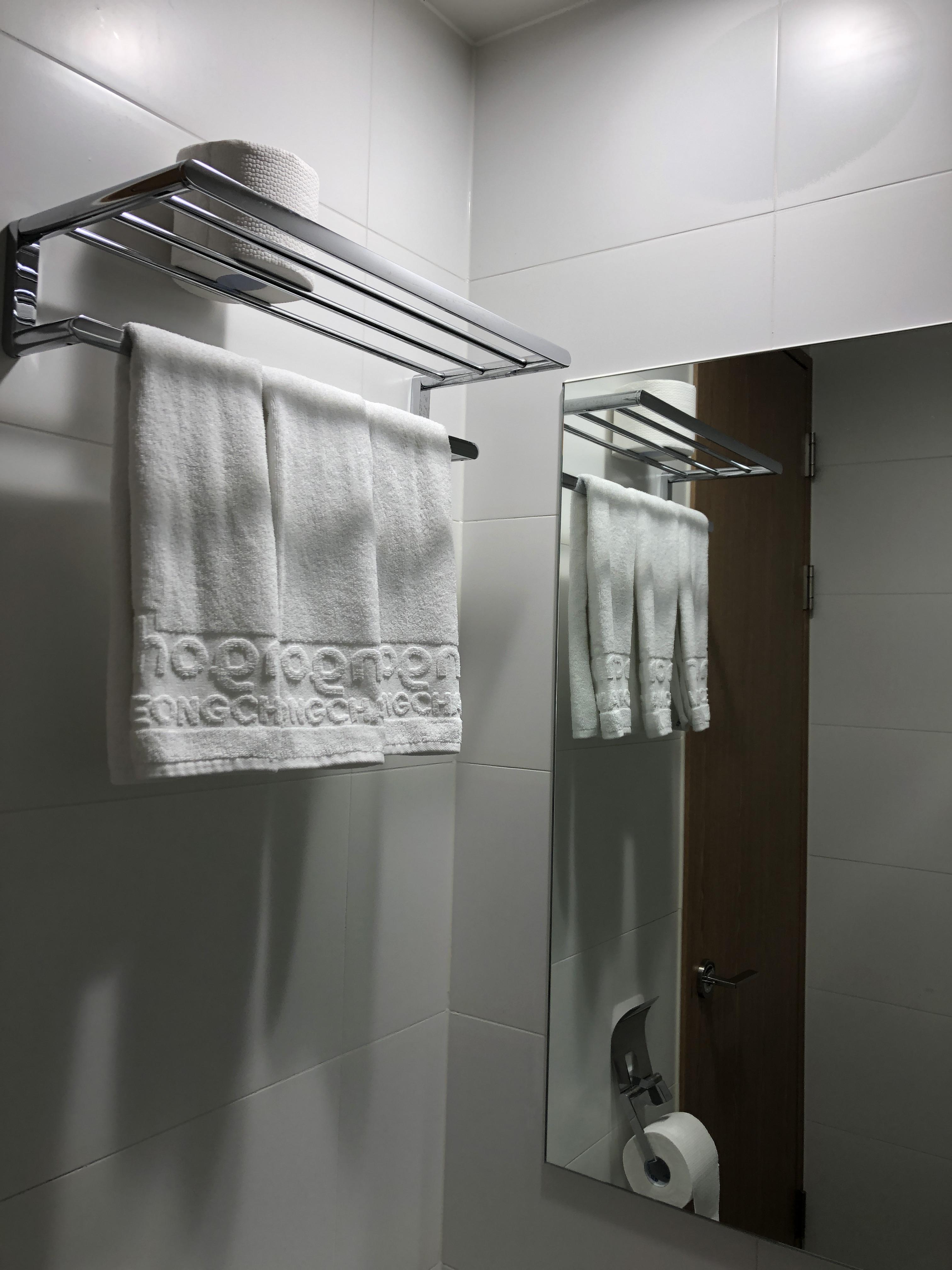 세면대는 화장실 문 옆에 있었다. 그리고 화장실에 들어가면 샤워부스가 있어서 변기와 샤워공간이 나눠져 있다. 화장실은 청결했지만 좁았다. 수압은 아주 좋았고 따뜻한 물도 매우 잘 나옴.