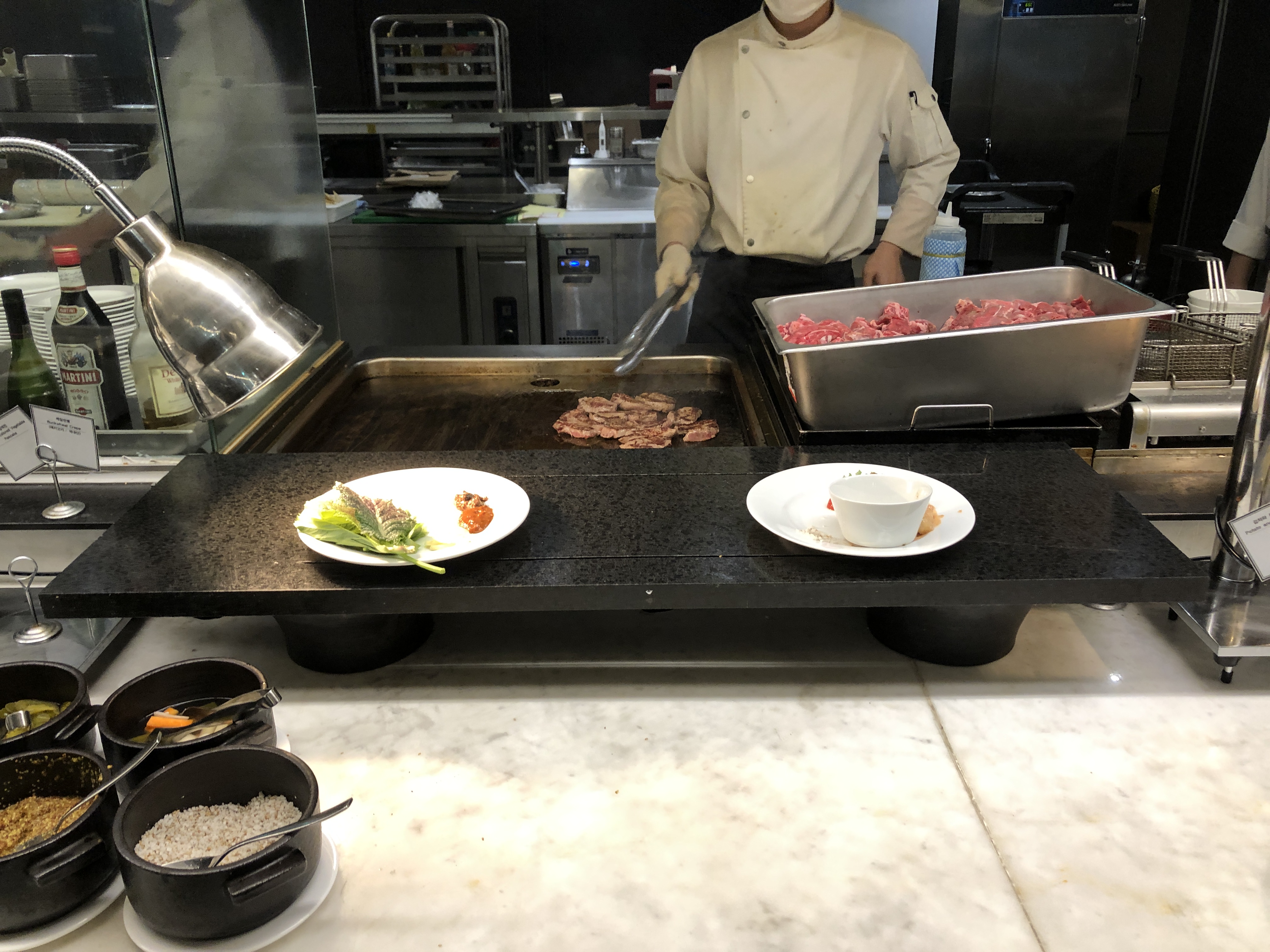 온도 디너 뷔페의 특징은 안심, 등심 스테이크와 생맥주가 무제한 제공된다는 점이다. 다른 음식의 종류는 (엄청) 다양한 편은 아니라 살짝 아쉬웠지만 음식 퀄리티는 전체적으로 괜찮았다. 스테이크는 셰프님이 바로 구워주시기 때문에 따뜻하게 먹을 수 있었다. 한 번에 3개까지밖에 안 주신다. 다 먹고 또 받으러 가야 됨! 초반에는 줄이 좀 길어서 스테이크 먹으려면 대기시간이 조금 있었다. 그런데 사람들이 금방 배불렀는지 두 번째부터는 대기 줄이 없었다.
