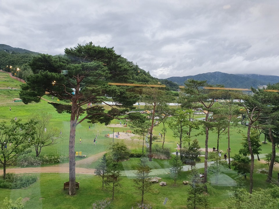 날씨는 흐리지만 초록 초록한 뷰가 참 좋았다. 여기서 곤돌라, 루지, 플라잉 짚까지 다양한 놀거리가 보였다. 겨울엔 스키장 뷰 일듯!ㅎㅎㅎ