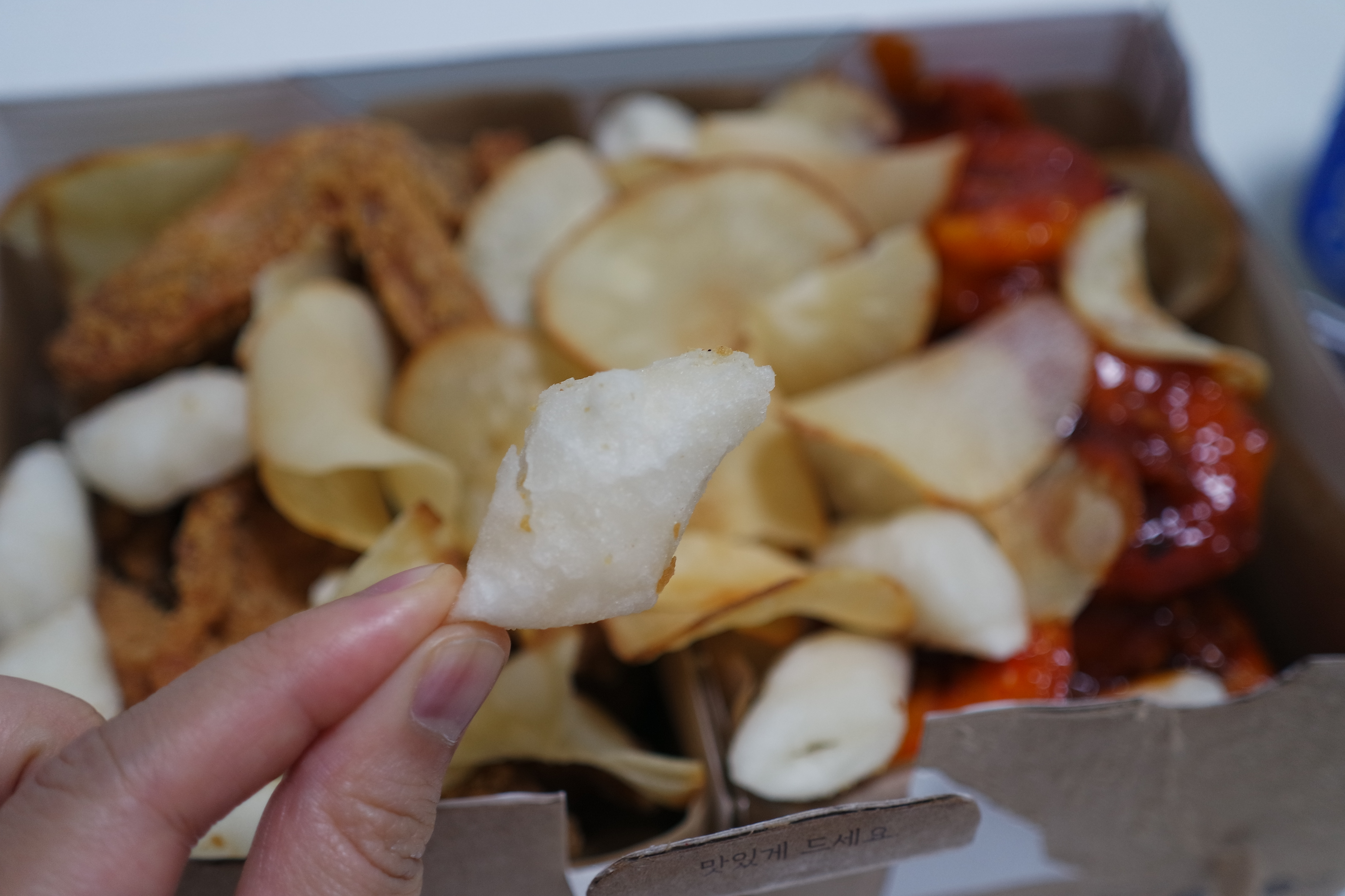 맨 위에 있는 칩은 당연히 감자칩일 거라고 생각했는데 카사바칩이라고 한다. 카사바라는 식물은 처음 들어봤다. 인터넷에 찾아보니 생김새는 길쭉한 고구마와 비슷한 구황식물이었다. 맛은 감자칩과 크게 다르지 않았다. 바삭하고 고소하고 담백했다. 그냥 먹어도 맛있지만 양념 소스에 찍어 먹으니 더 맛있었다.