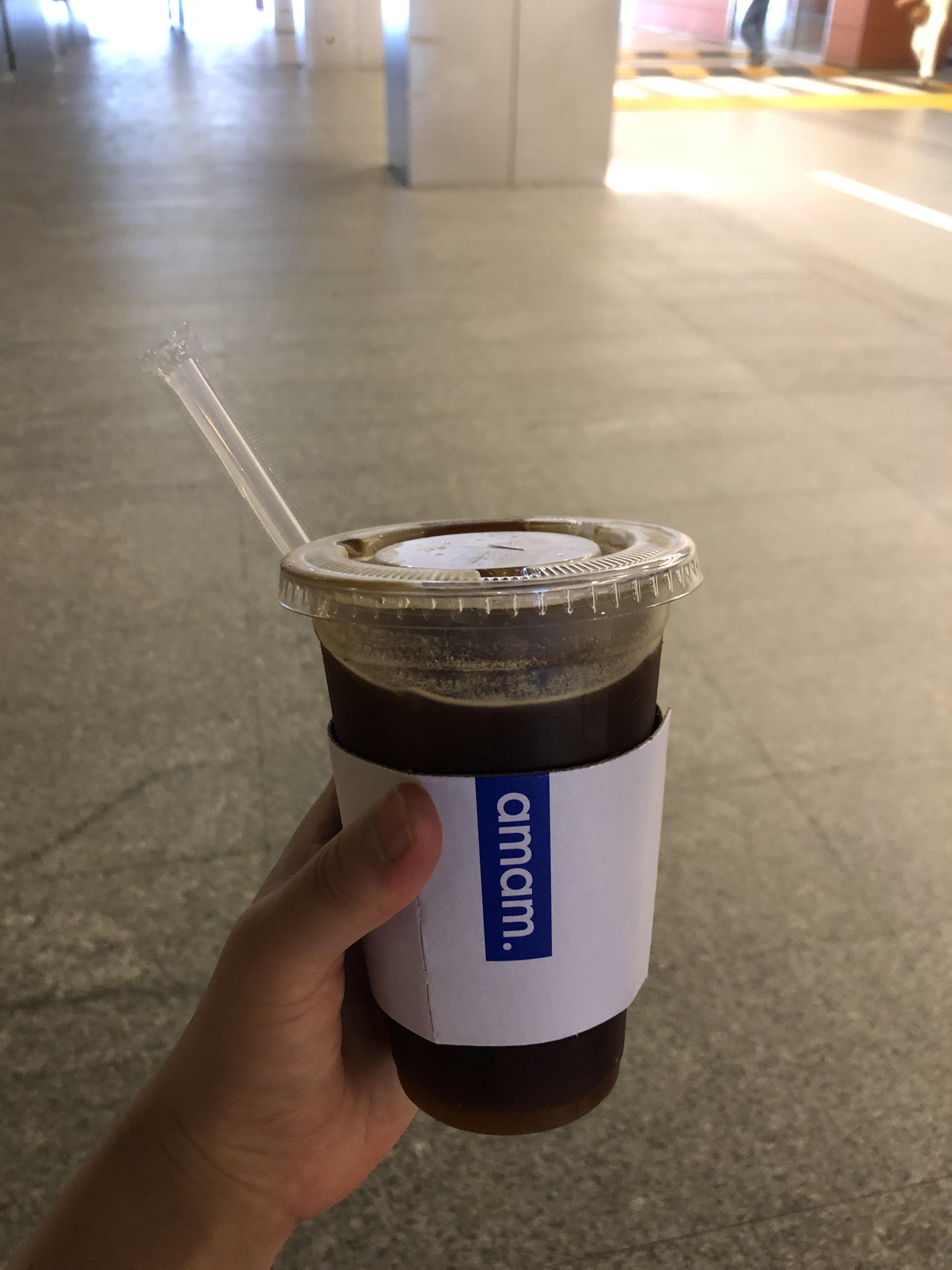 커피를 받아 들고 바쁘게 사무실로 걸어갔다. 이와 중에도 한 컷 남겼다. 커피는 전체적으로 저렴한 편인데 세트 구성이라 더 저렴하게 먹었다. 커피 맛은 신맛이 강했고 생각보다 맛이 없었다.ㅠㅠ 흑흑