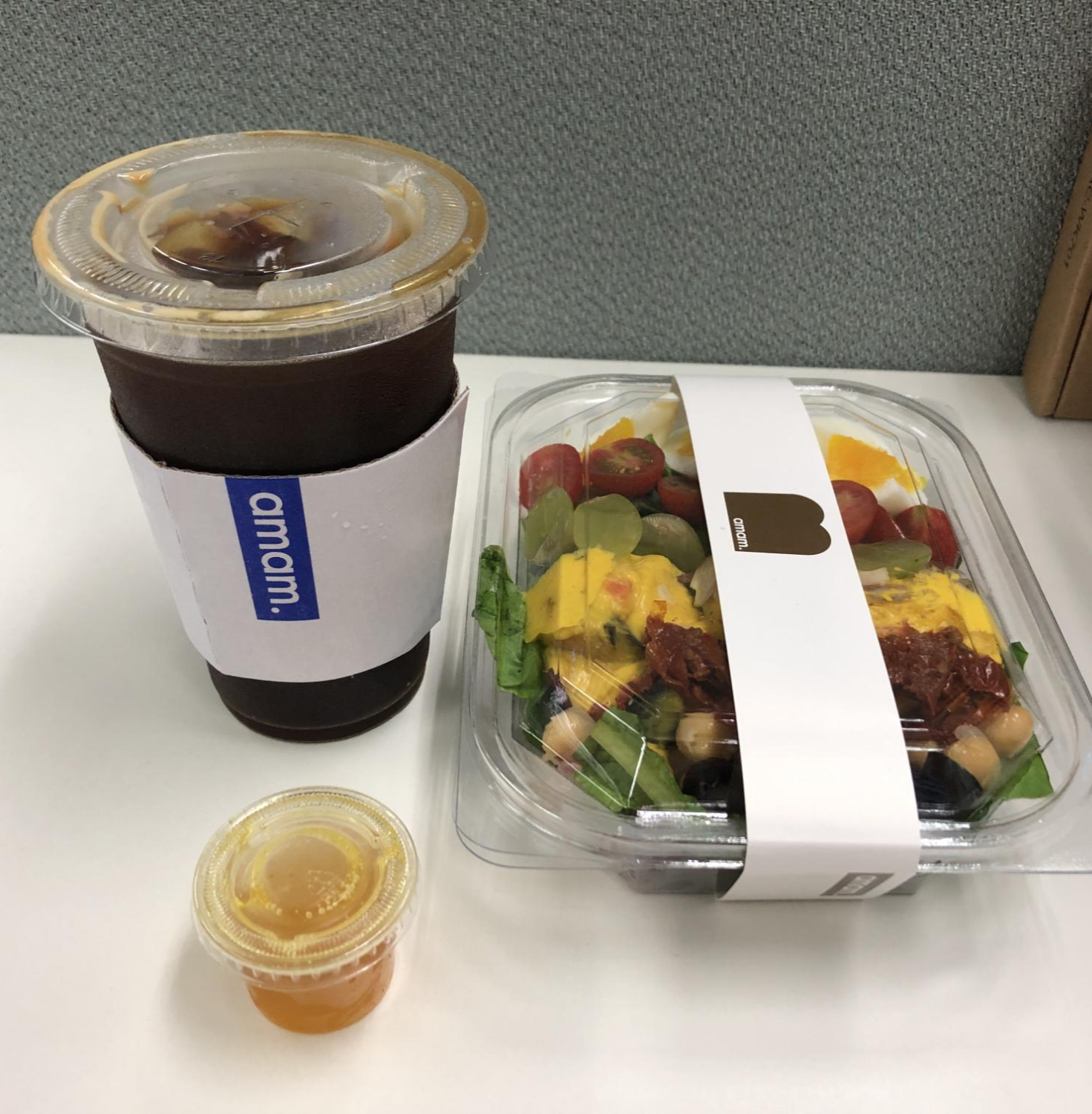 코로나 19 바이러스가 재확산되면서 한층 더 삭막한 사회가 되고 있다. 회사 생활의 유일한 낙이 점심시간이었는데 이젠 마음 편히 나가서 점심 먹기도 어려운 실정이다. 오늘 점심은 회사 근처 서울스퀘어에 있는 카페 아맘(amam.seoul)에서 샐러드를 포장해와 간단하게 해결했다.