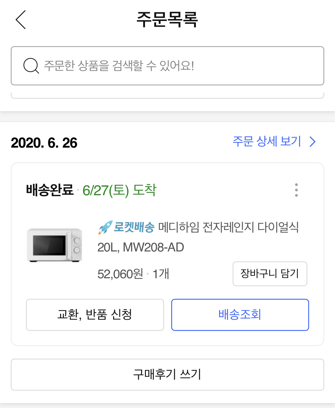 자취를 시작하면서 가장 먼저 구입한 것 중에 하나는 바로 전자레인지이다. 요리 무식자인 나에게는 전자레인지가 생활필수품이다. 햇반이나 도시락 데워먹고 배달 음식 시켜먹고 남으면 냉동해뒀다가 해동시켜 먹고 아주 요긴하게 사용한다. 현재 거주하고 있는 집에는 전자레인지가 기본 옵션으로 없어서 입주하는 날에 맞춰서 쿠팡에서 주문을 했다. 내 사랑 쿠팡 로켓 배송...! 자취를 시작하면서 구입한 물건이 어마어마하게 많은데 그중 대부분을 쿠팡에서 구입했다. 익일 배송과 문 앞 배송은 진짜 쿠팡만큼 좋은 곳이 없는 듯...! 이사하면서 쿠팡에서 구입한 게 50가지가 넘는다.