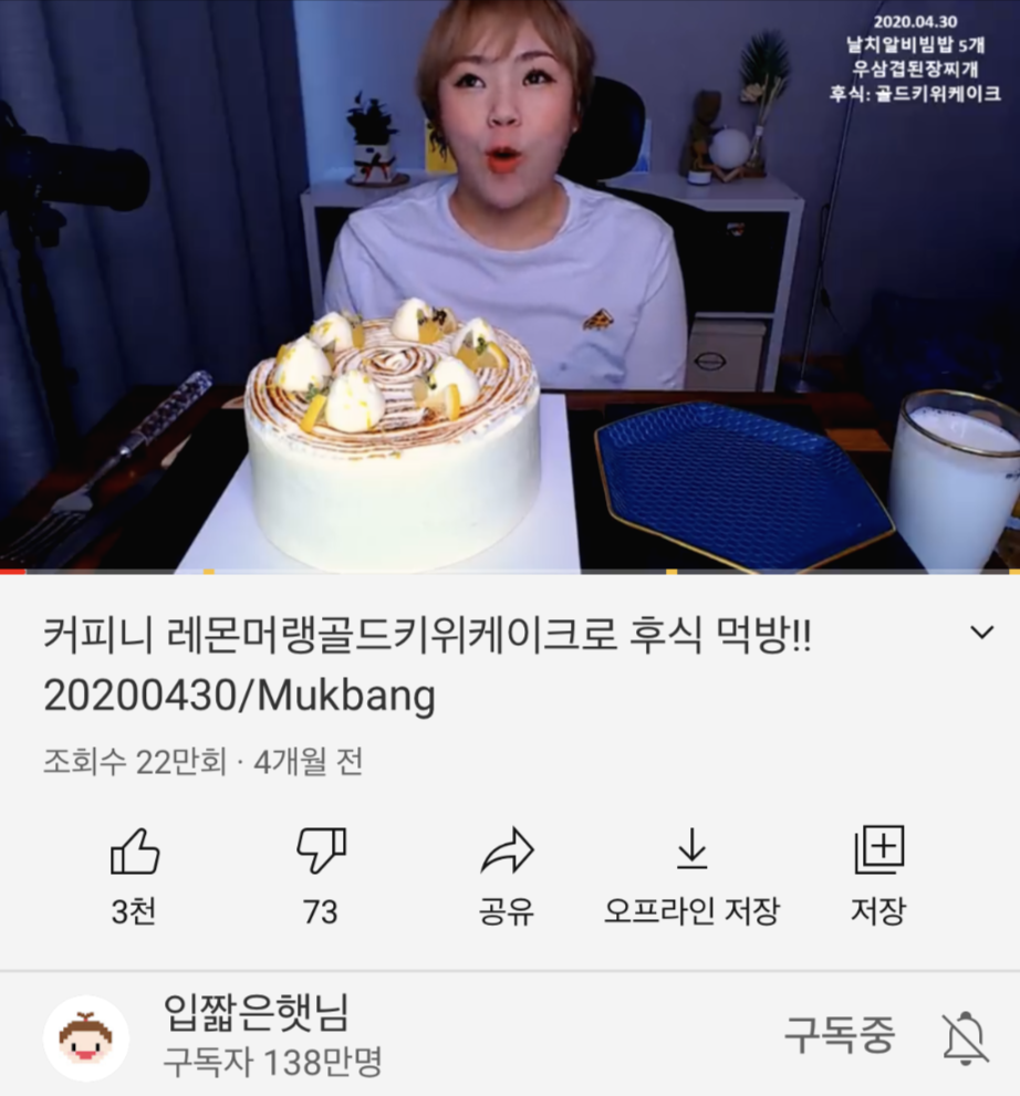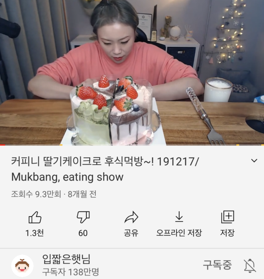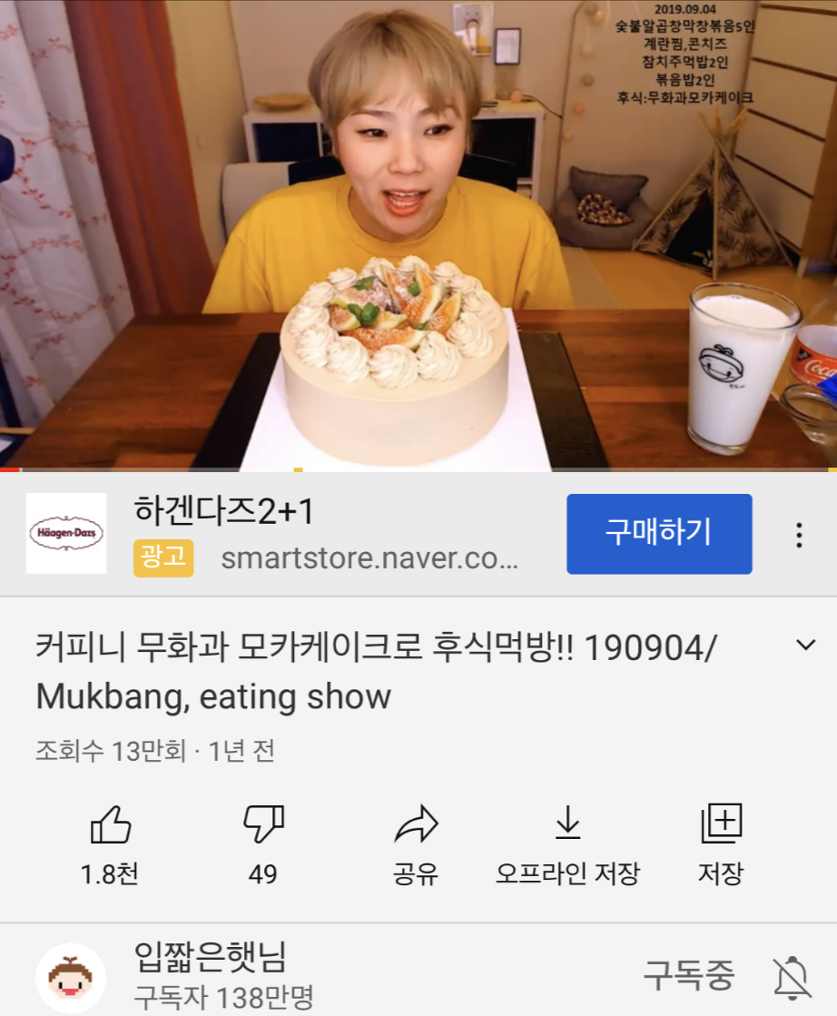 요즘 유튜버 '입짧은햇님'에 빠져있다. 입짧은햇님의 케이크 먹방 동영상을 보다가 그 케이크 집이 우리 집 근처에 있길래 사 먹어 보았다. 그 케이크 집은 프랜차이즈 '커피니'인데 프랜차이즈 카페지만 그 지점만 특이하게도 사장님이 직접 케이크를 만들어 판매한다. 그 케이크가 너무 맛있어서 케이크 맛집으로 유명하다.