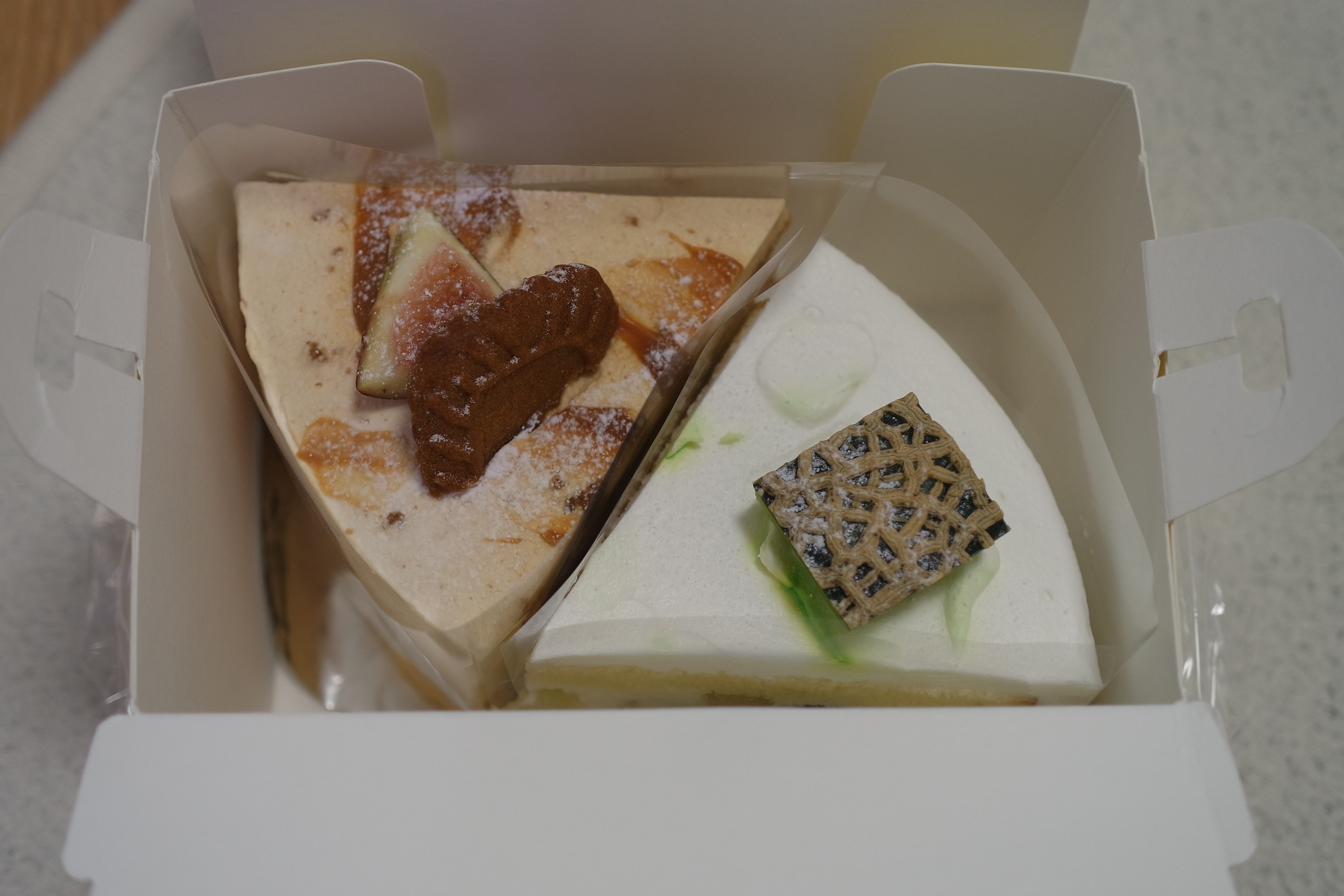 오늘 구매한 케이크는 솔티 캬라멜 무화과 케이크와 순우유 메론 케이크였다. 오늘 약속이 있어서 디저트로 케이크를 사 가지고 갔는데 너무 만족스러웠다.