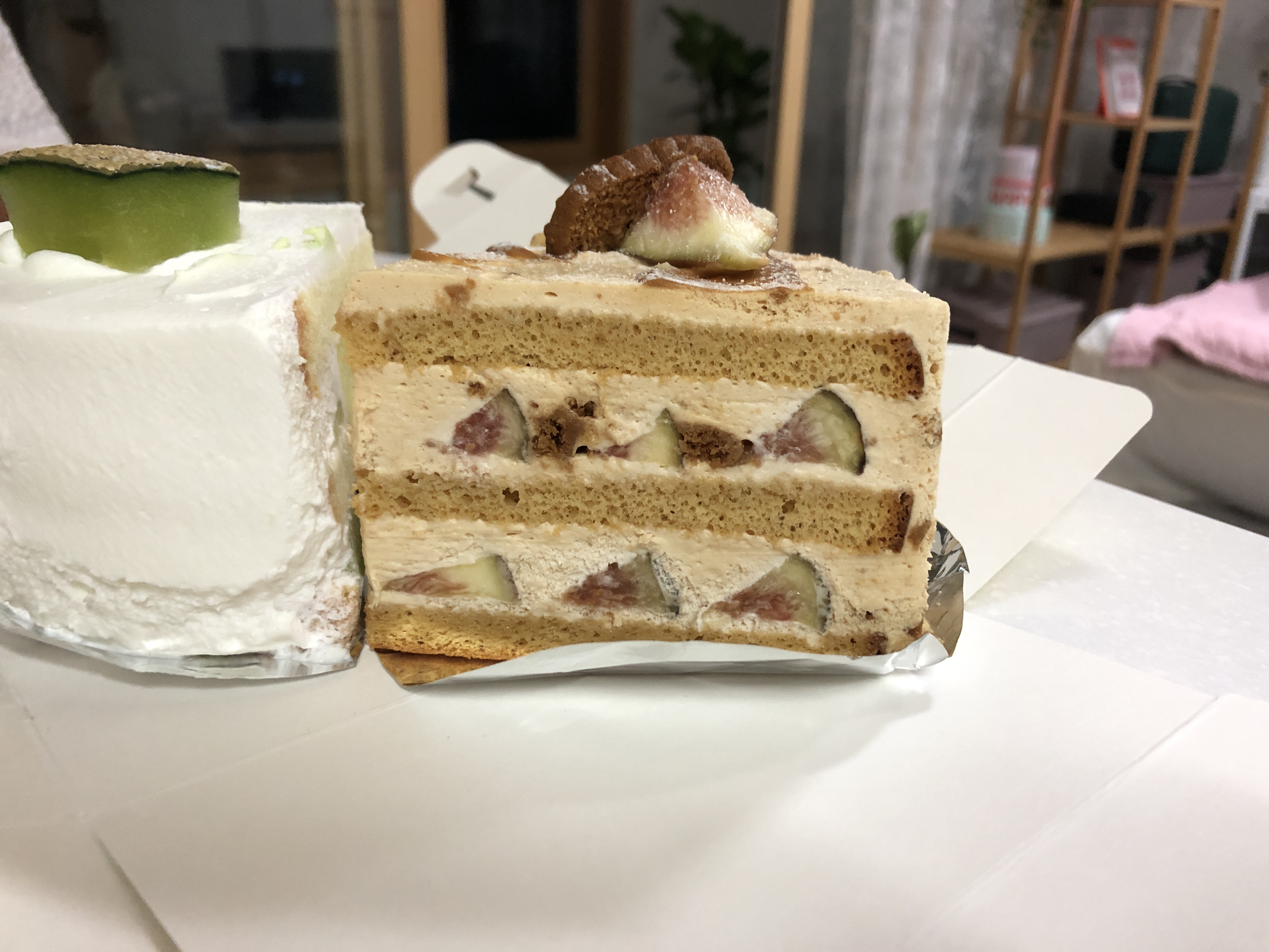 솔티 캐러멜 무화과 케이크는 위에 작은 무화과 한 조각과 로투스 과자가 올려져 있었다. 크림은 단짠단짠 했다. 소금과 캐러멜의 조화가 로투스 과자 맛이랑 상당히 비슷했음. 안에 들어있는 무화과랑 참 잘 어울렸다. 무화과는 생과일로는 잘 안 먹는데 케이크나 빵, 잼으로 만들면 엄청 좋아한다.