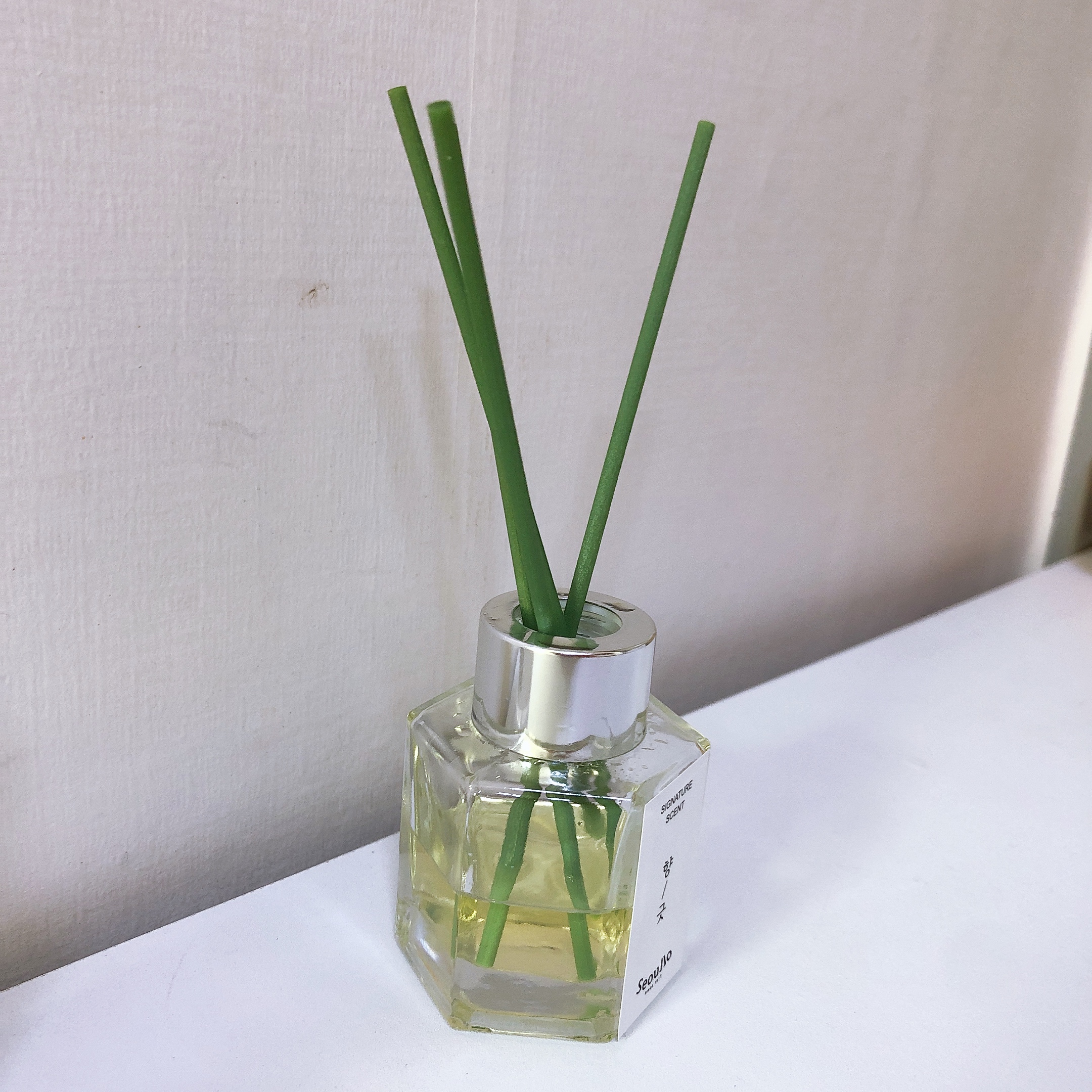 공병에 디퓨저를 다 부었더니 공병이 가득 찼다. 스틱을 4개 꽂았더니 디퓨저가 넘치기 직전이었다. 그러고 나서 하루가 지났는데 스틱이 디퓨저를 많이 머금었는지 디퓨저 액체가 눈에 띄게 줄어 있었다. 그리고 향이 달라졌다. 처음에는 너무 진해서 거부감이 드는 향이었는데 하루정도 지나자 향긋하고 싱그러운 향이 은은하게 방안 가득 퍼졌다. 지금 현관 앞에 뒀더니 집에 들어올 때마다 기분이 무척 좋다.