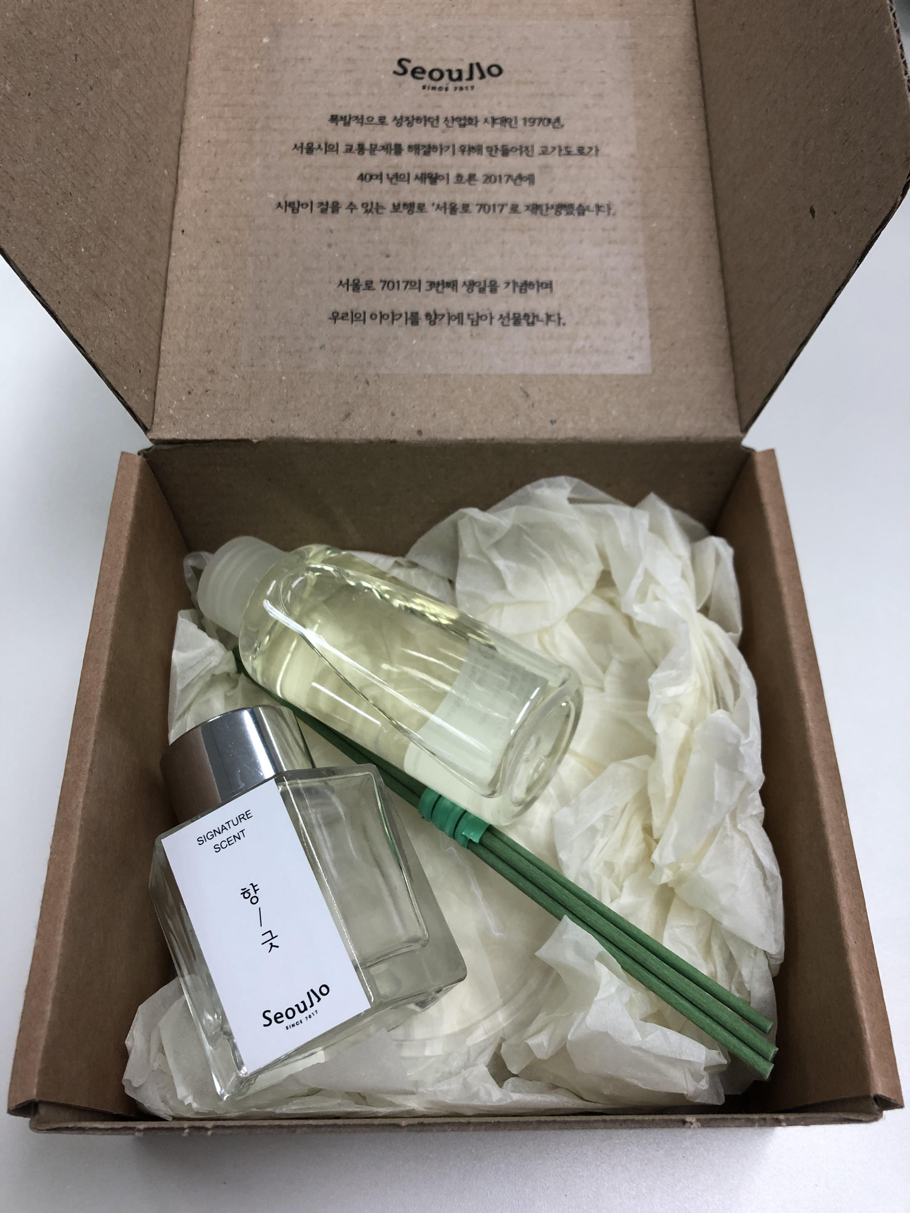 그리고 며칠 뒤 받은 택배 하나! 서울로 7017에서 보낸 디퓨저였다. 몰랐는데 서울로 7017 사무실은 우리 회사랑 무척 가까웠다. 직접 받으러 가도 될 정도임.
