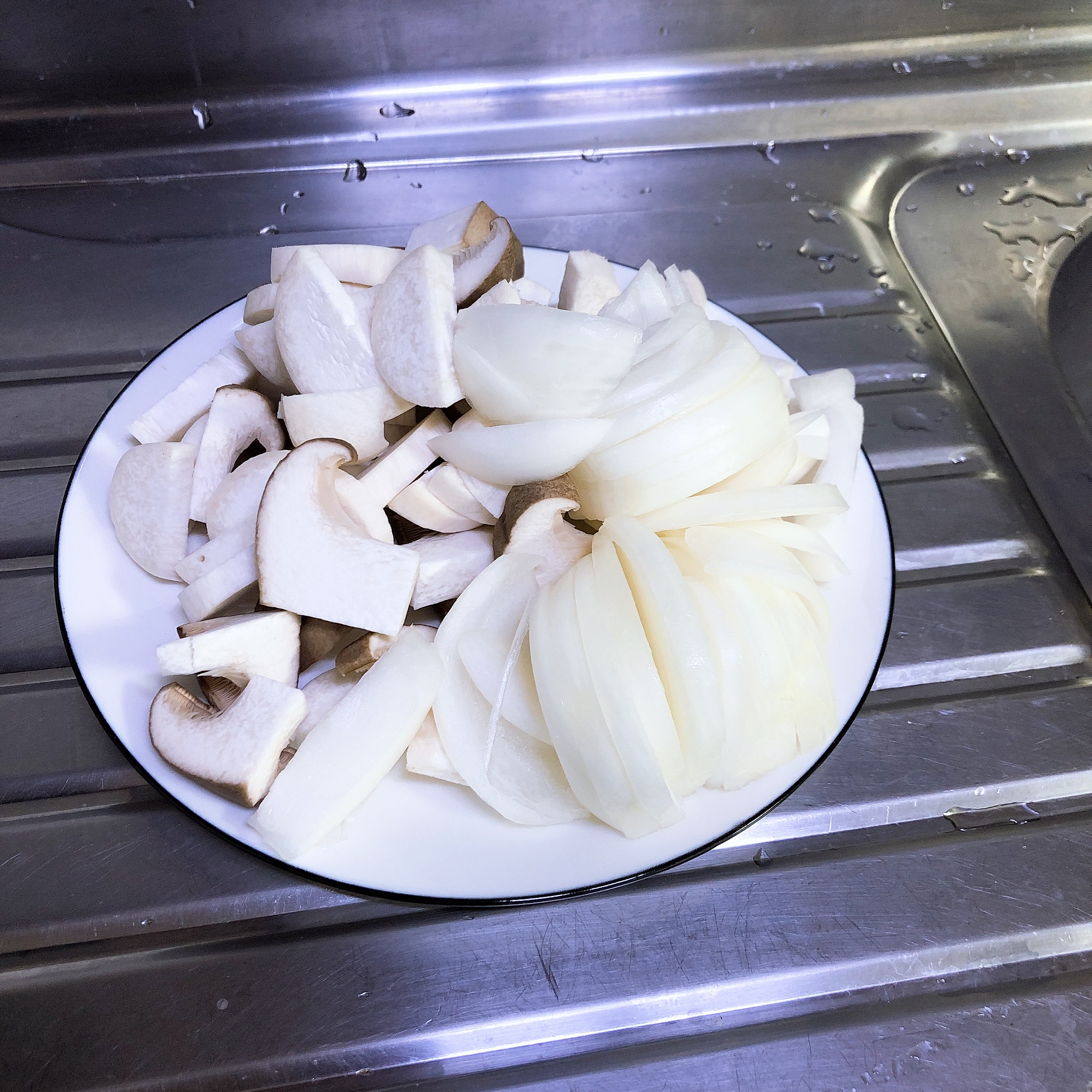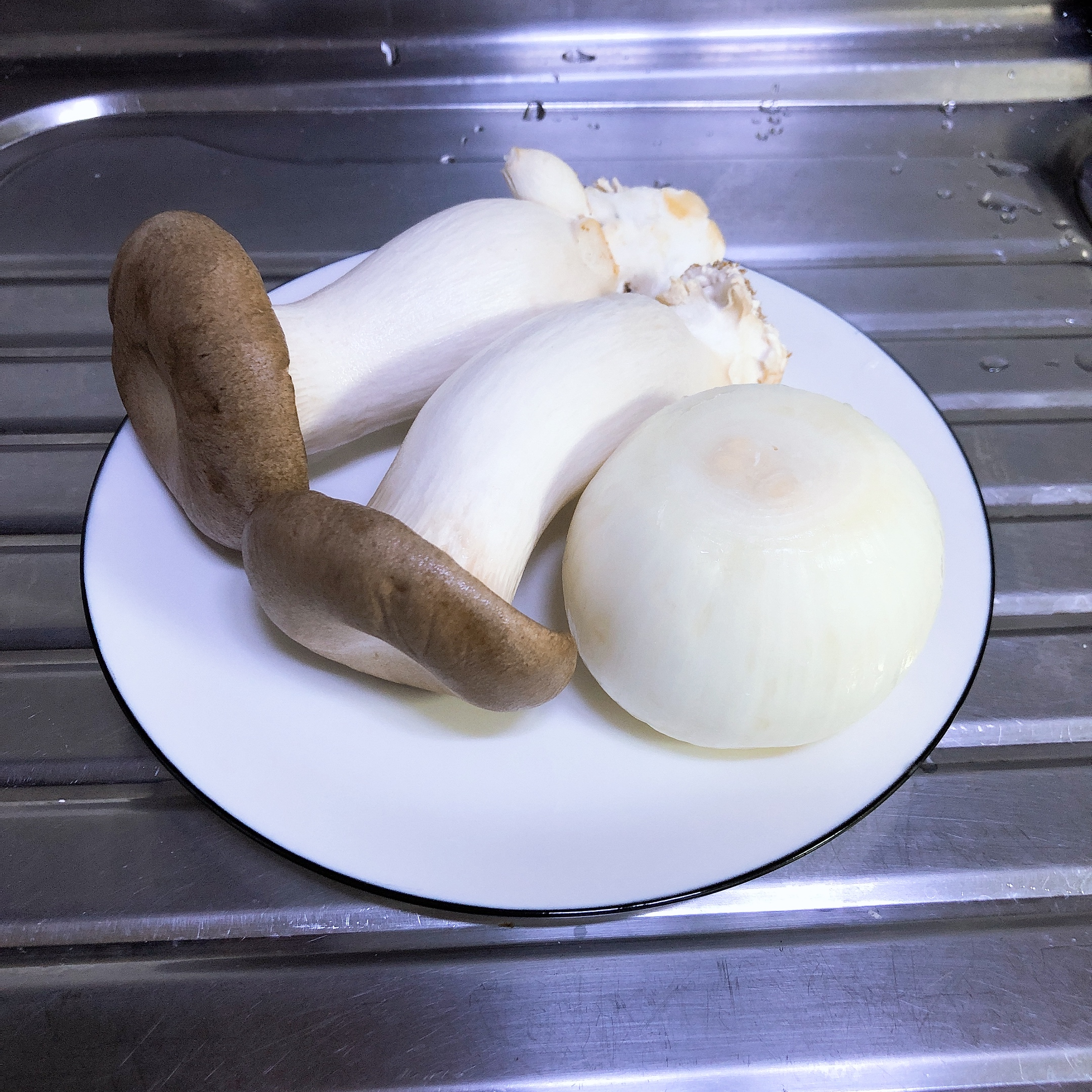 예쁘게 손질된 양파와 버섯. ㅎㅎ 바로 구워버렸다.