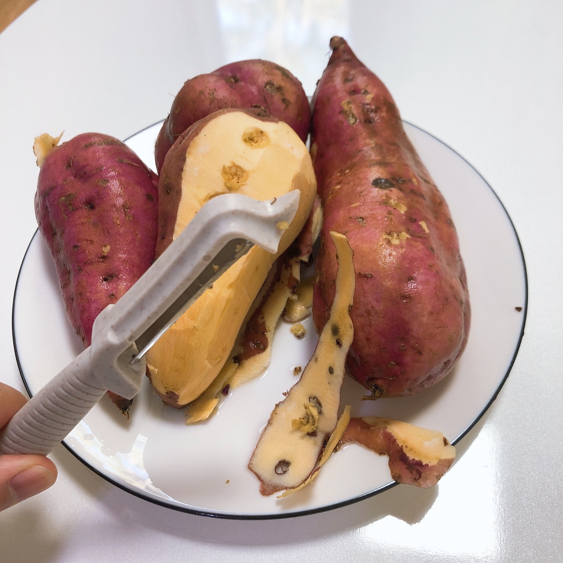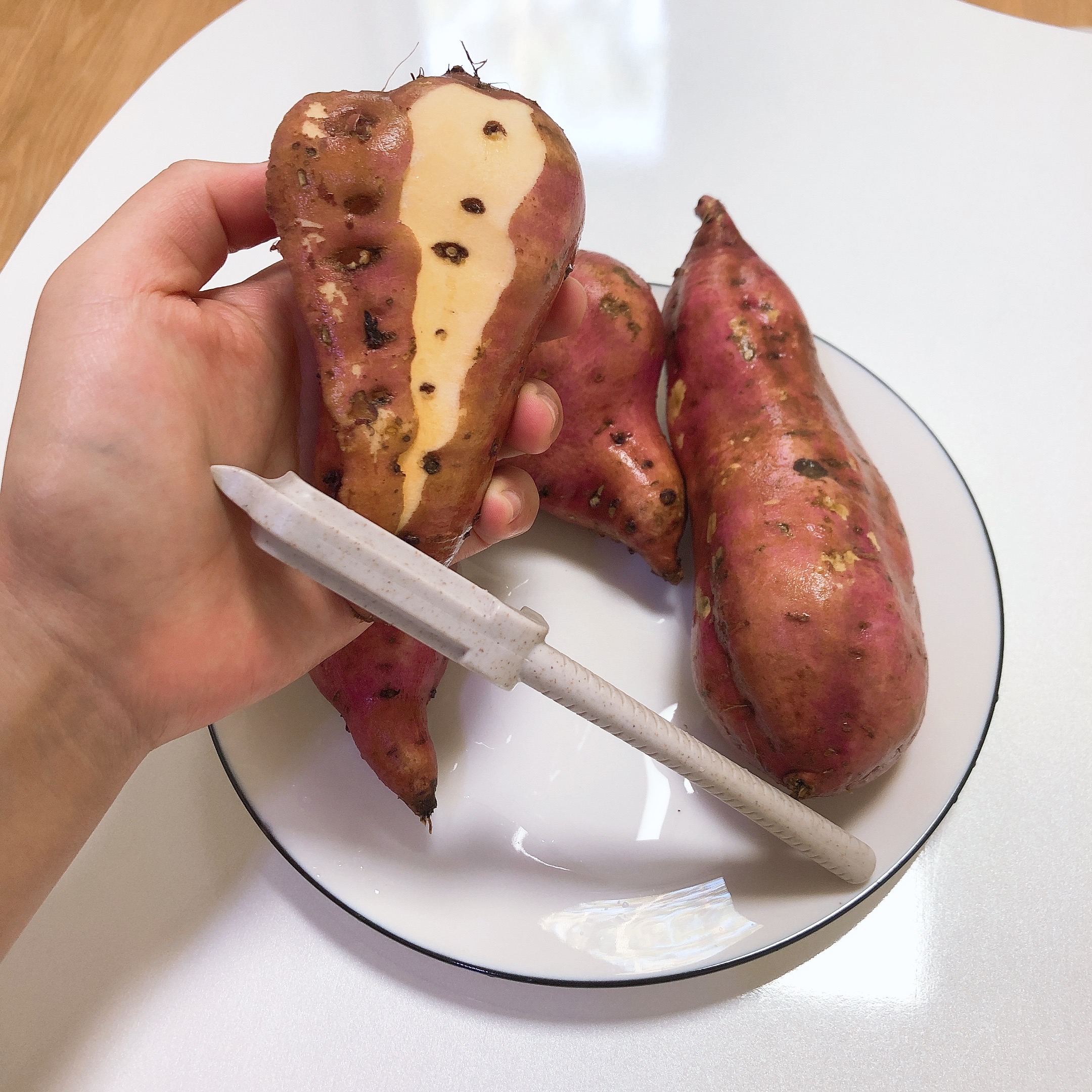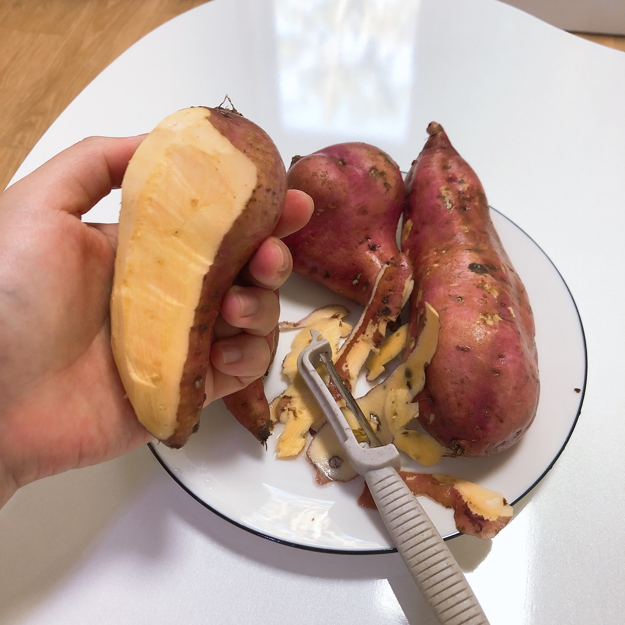 감자칼은 껍질을 벗겨낼 때 뿐만 아니라 감자칼 상단의 뾰족한 부분으로 고구마 굴곡진 부분을 파낼 때도 참 좋다. #자취생조리도구 #자취생요리도구