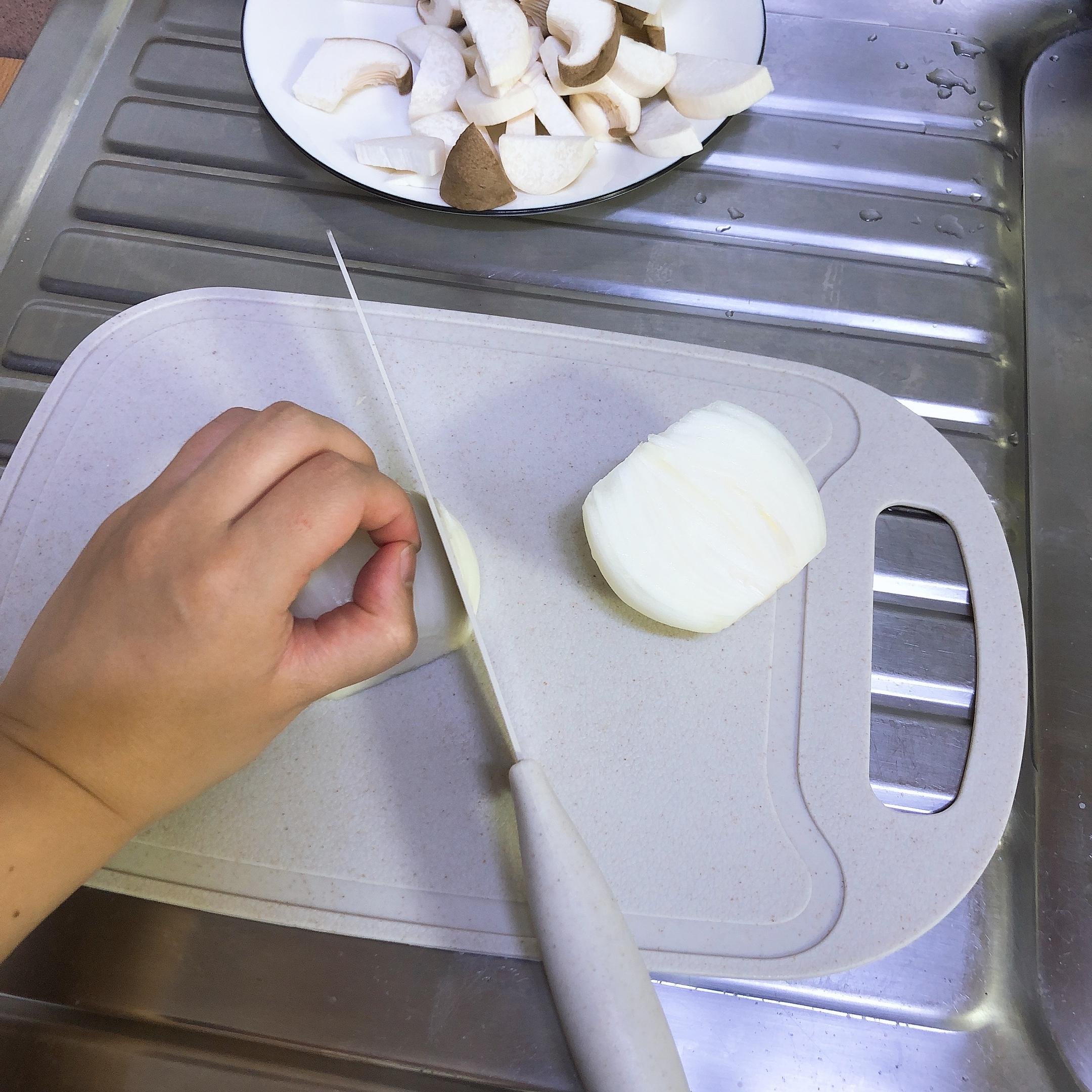 이 날은 삼겹살을 구워먹기 위해 채소를 손질했다. 새송이버섯과 양파를 깨끗이 씻어 준비한 후 칼질 시작!!!