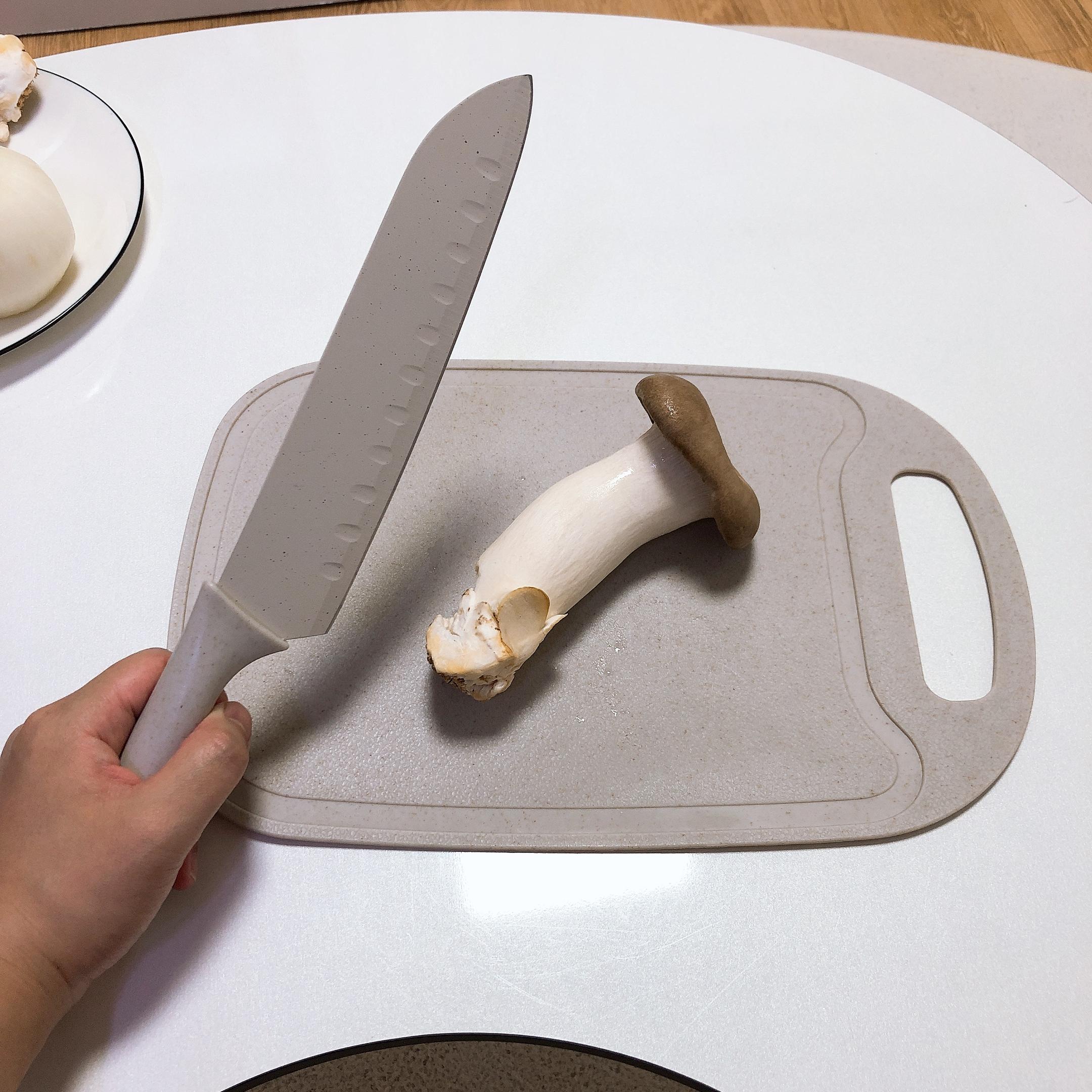 아시아식도로 새송이버섯을 잘랐다. 아시아 식도가 가장 활용도가 좋은 것 같다. 그립감이 좋고 잘 썰린다. 혼자 칼질 사진 찍으려니 참 어려웠다.