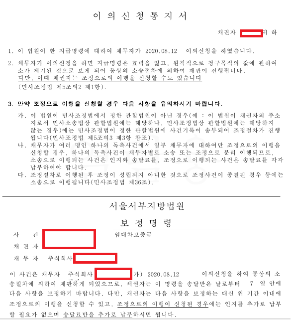 퇴거 8개월 만에 임대차보증금을 돌려받았다. 두 달 전쯤 전자소송으로 임대차보증금 지급명령을 신청해서 지연이자까지 받아 낼 수 있었다. 지난 포스팅에서는 지급명령 신청까지의 과정을 정리했었고, 이번에는 지급명령 송달 후 채권자가 이의 신청하여 소액소송 접수까지 했다가 극적으로 합의하여 보증금을 돌려받고 소송취하한 이야기를 적어본다.
