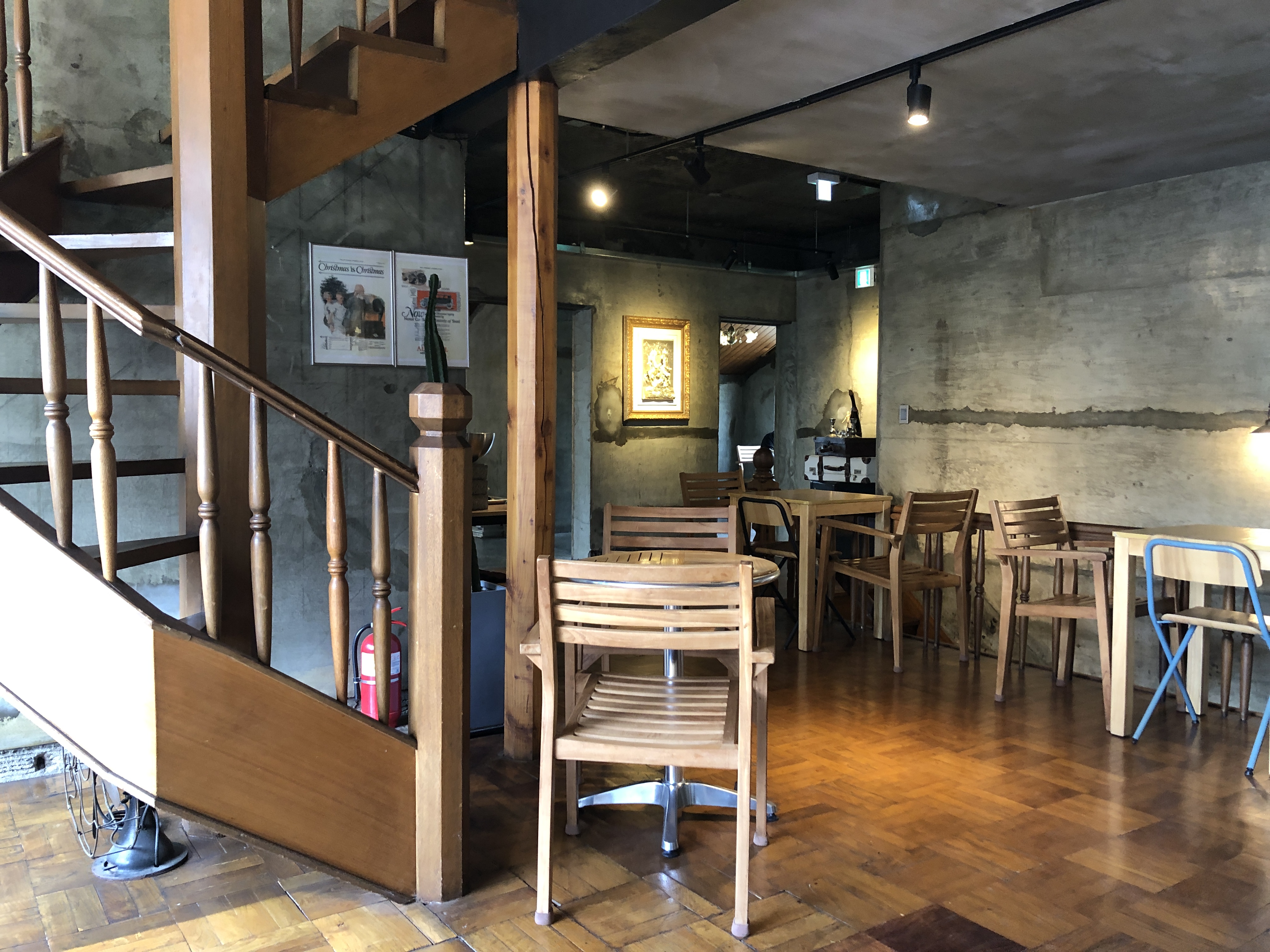 2층에 나무 계단이 또 있었는데 이건 올라갈 수는 없고 그냥 인테리어용이었다.