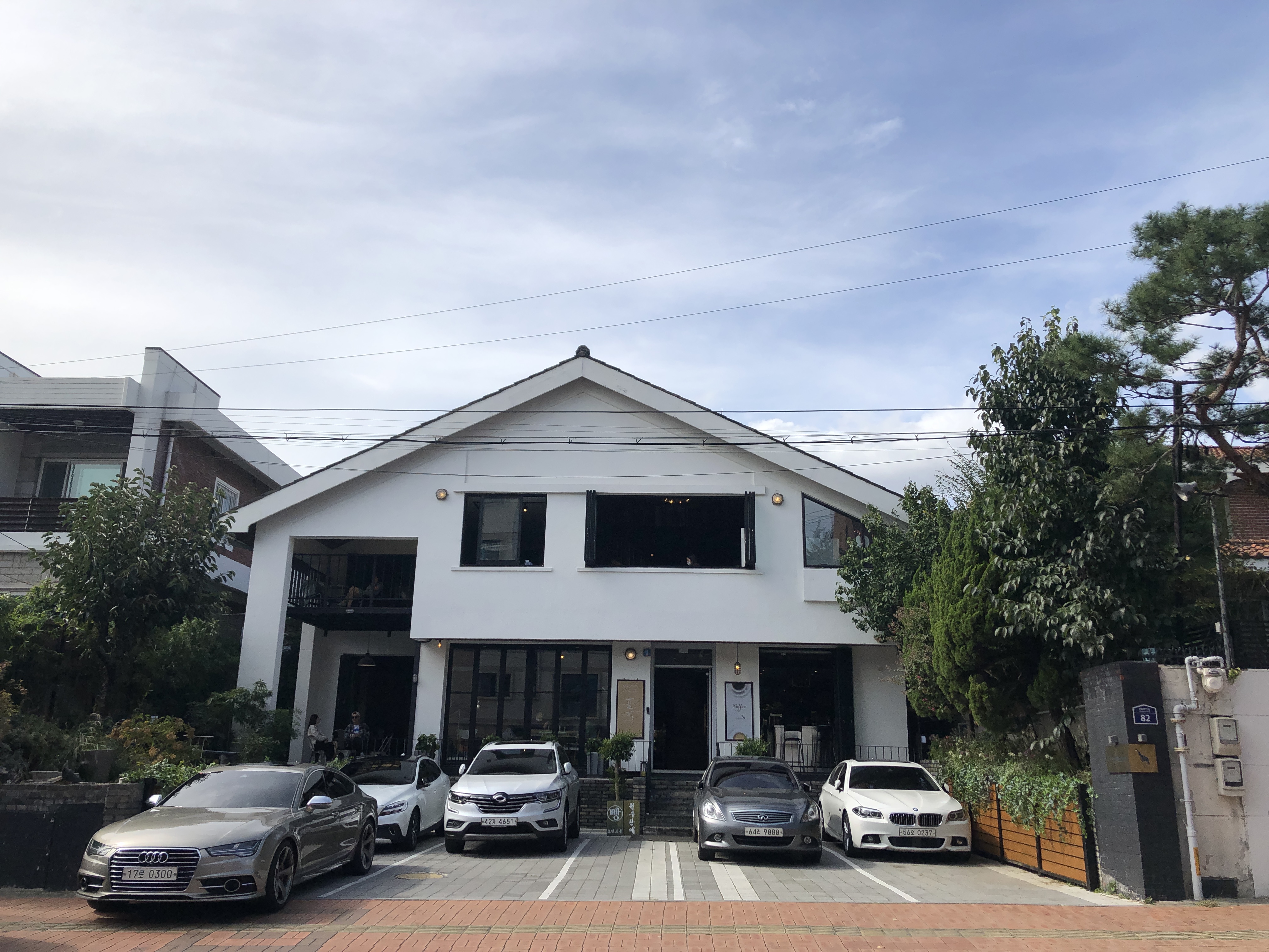 로덴드론은 하얀색 건물이고 2층 카페였다. 왠지 주거용 단독주택이었다가 리모델링해서 카페로 운영되는 느낌이 들었다. 주변에 예쁜 2층 집들이 많았고 로덴드론에서 세월의 흔적이 느껴졌기 때문이다. 주차난 심한 동네지만 로덴드론은 매장 앞 주차가 가능하고 대로변 주차도 허용되는 곳이었다. 평일이라 그런지 차가 많지 않았다.