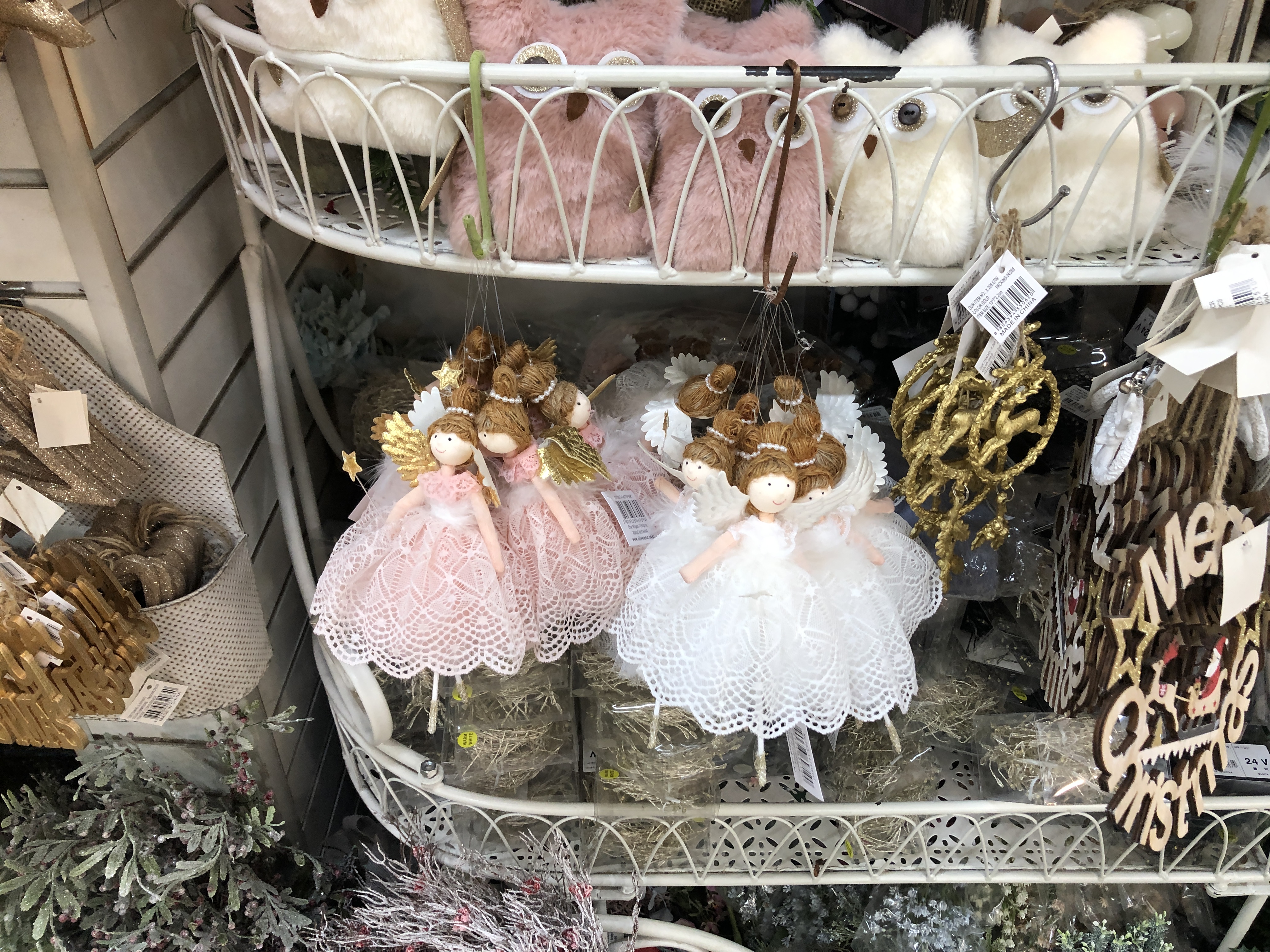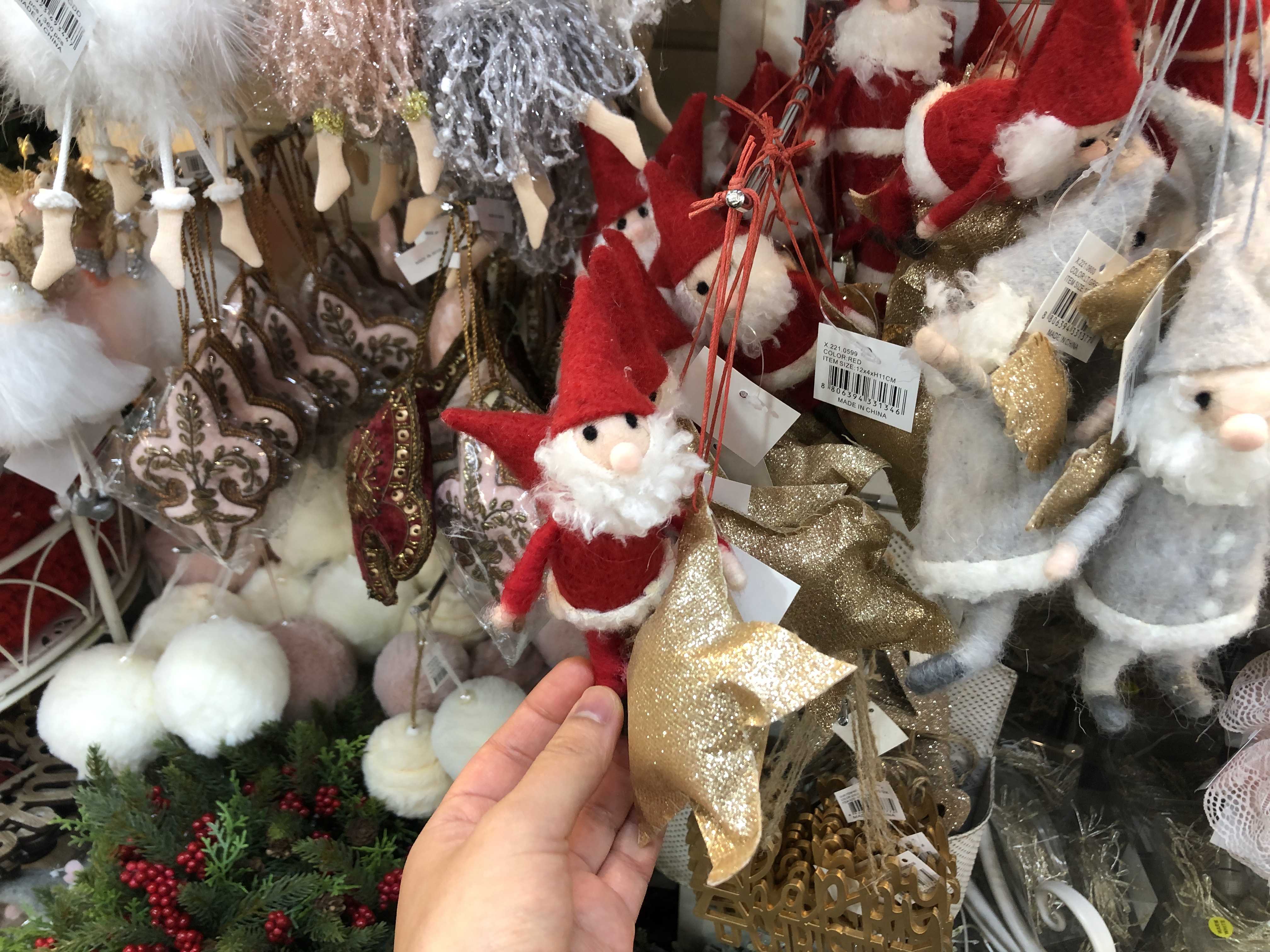 화려한 크리스마스트리 장식들이 눈에 띄었다. 산타 인형, 루돌프 인형, 리본, 방울, 전구, 가랜드, 크리스마스 볼, 솔방울, 눈 소품, 양 인형, 종, 천사 인형 등 종류가 엄청 많았다. 어찌나 아기자기하고 귀여운 게 많은지 다 사고 싶었다.