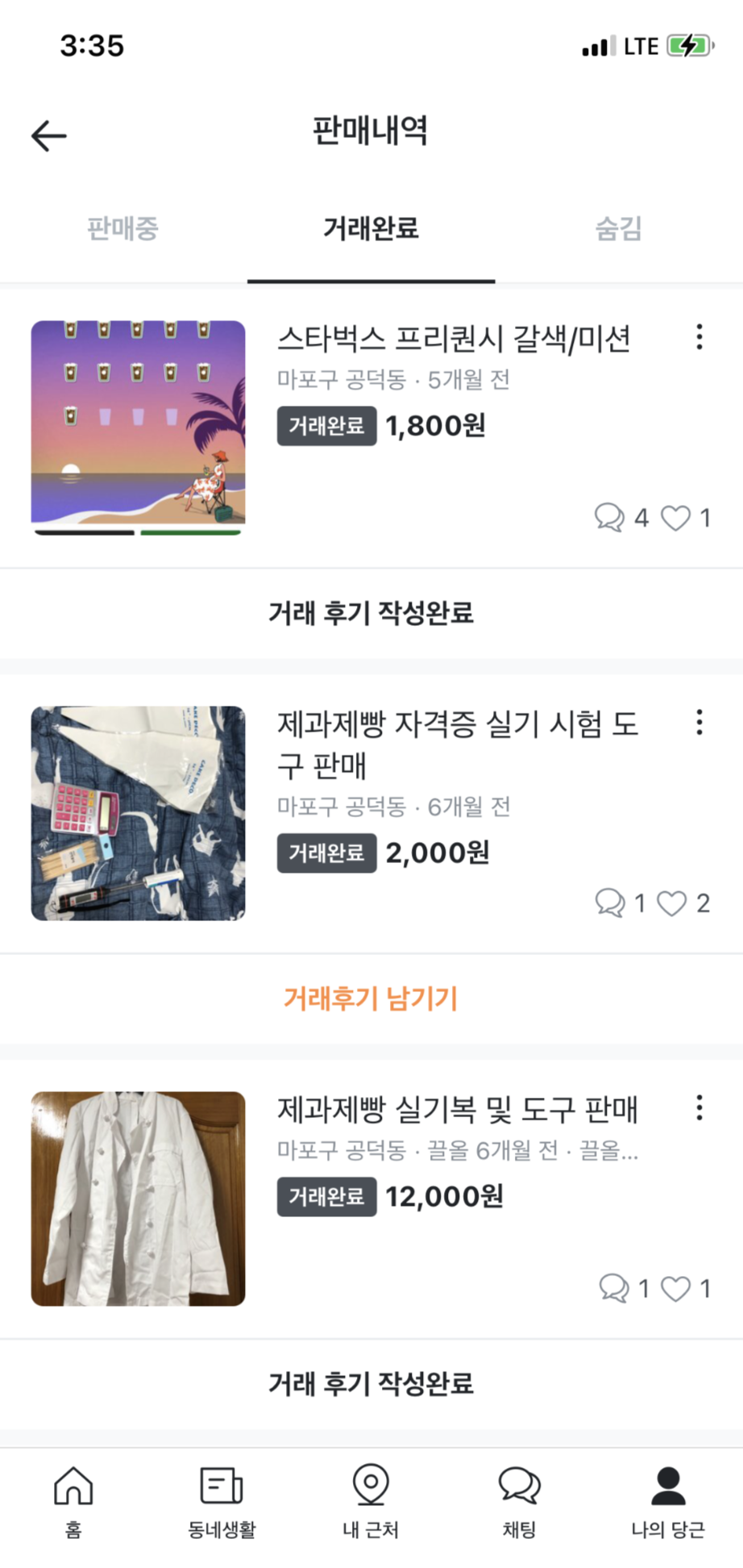 나는 중고거래를 대부분 '당근마켓'을 통해서 했다. 당근마켓은 우리 집 근처의 사람들과 직거래를 하기 때문에 택배비 및 배송비가 들지 않는다는 점이 특히 좋다. 나는 중고거래를 통해 옷, 책, 제과 도구 등 다양한 제품을 판매했다. 그리고 스타벅스 프리퀀시도 판매해봤다. 프리퀀시 5개 정도밖에 못 모아서 안 모으려고 했었는데 뜻밖에 부수입이 생겼다.