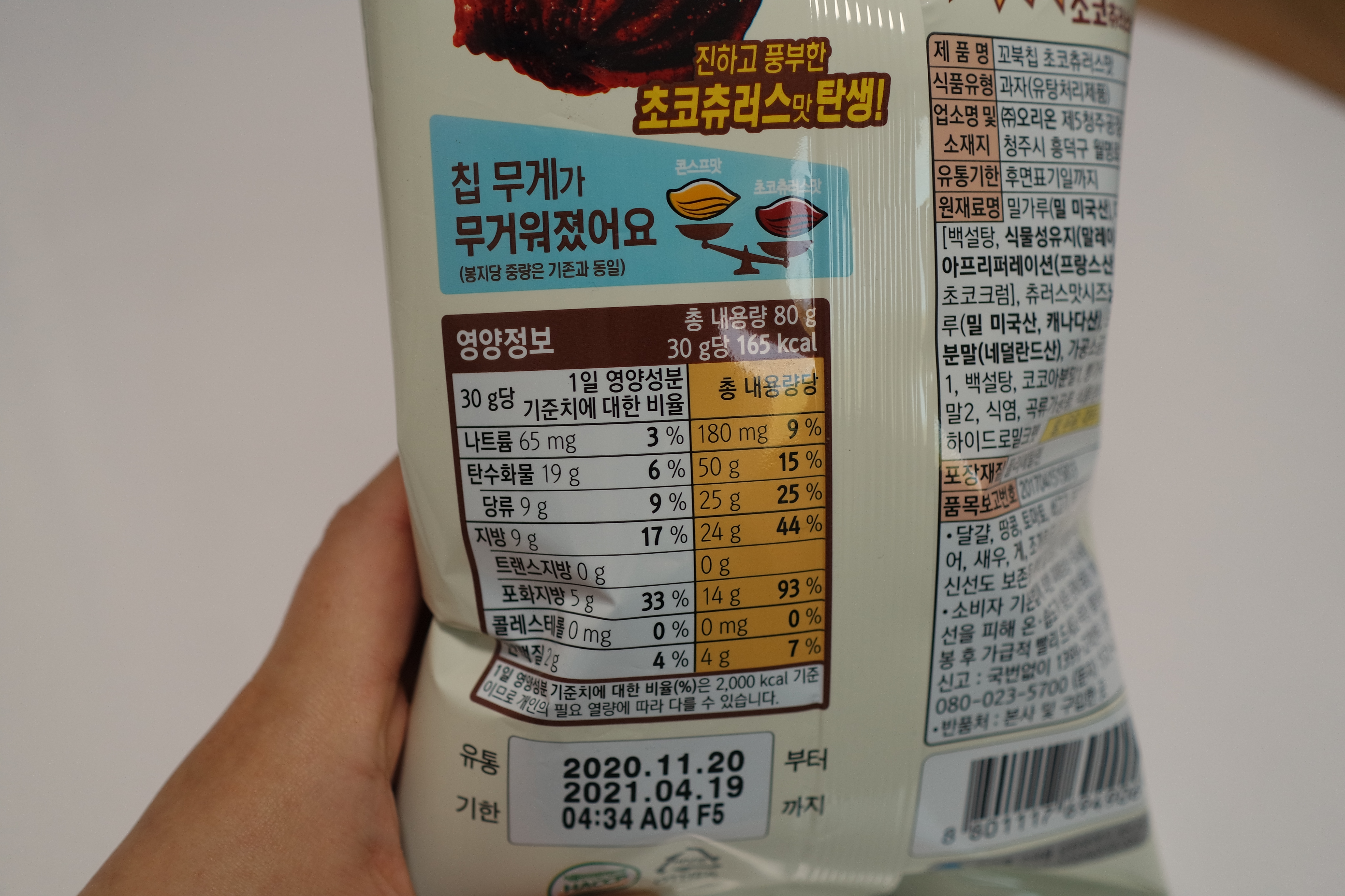 - 꼬북칩 초코츄러스맛 칼로리 : 30g당 165kcal