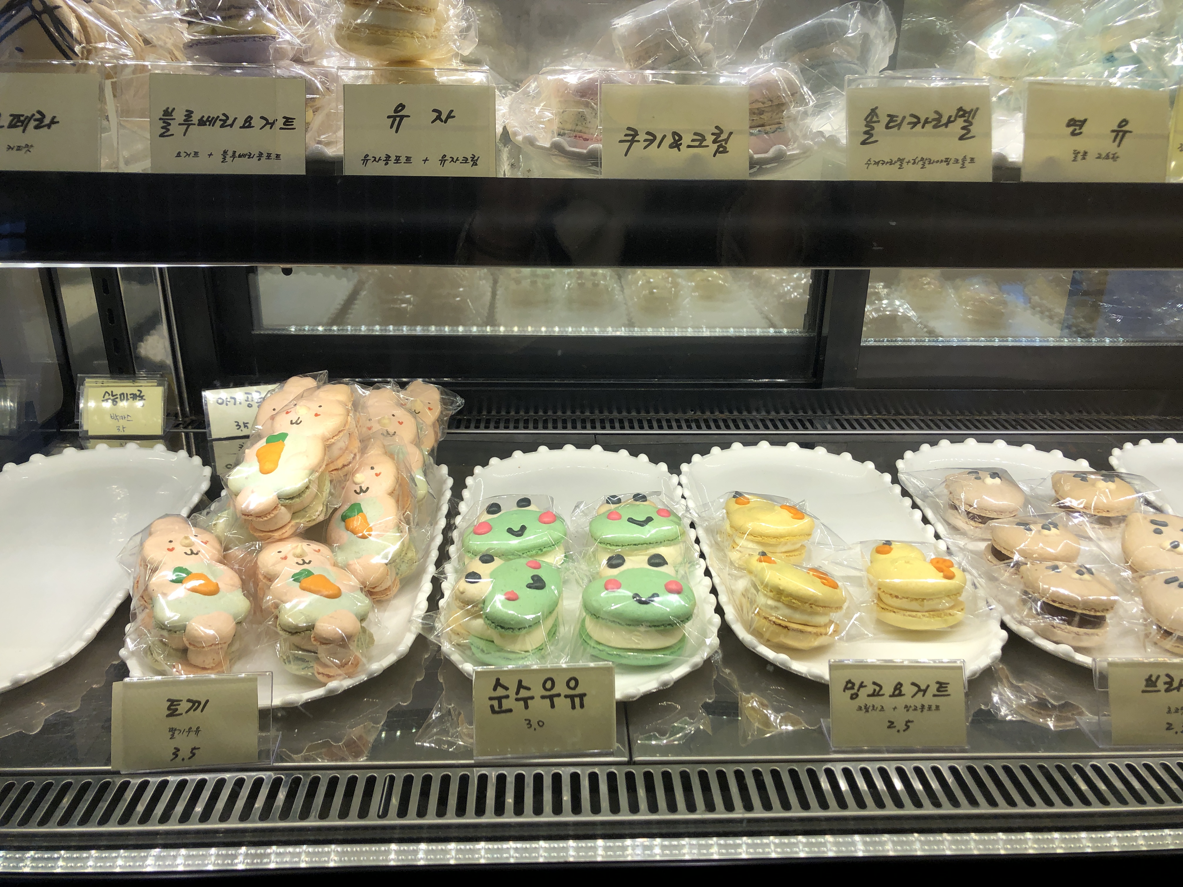 카운터 앞에 있는 마카롱탑이 인상적이었다. 저 마카롱은 당연히 가짜겠지만 왠지 만져서 확인해 보고 싶었는데 간신히 참았다.