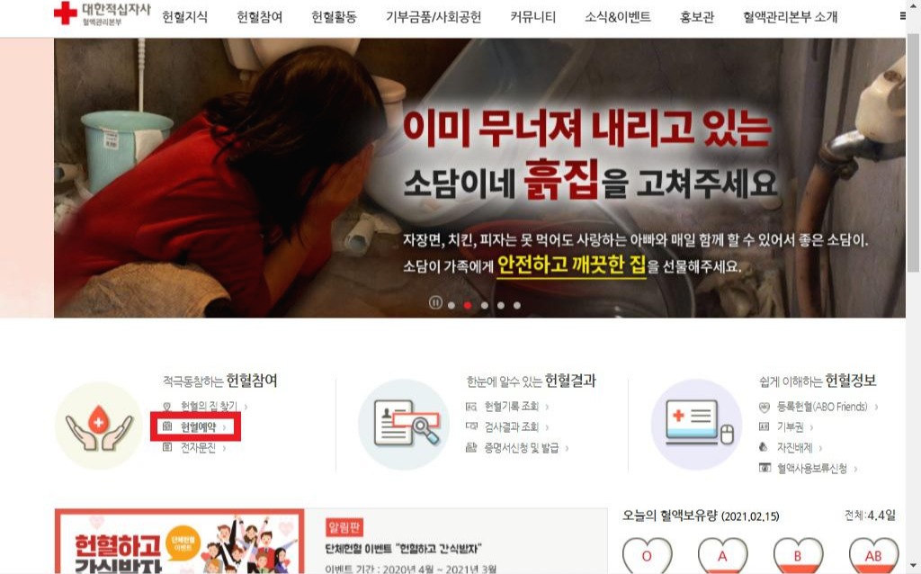 - 헌혈 예약하기 : 대한적십자사 사이트에 접속한다.