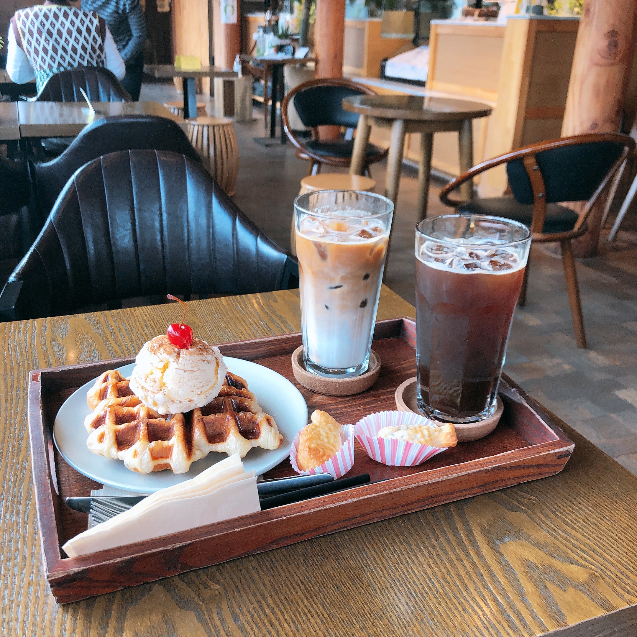 진동벨이 울려서 주문한 메뉴를 받아왔다. 우리는 아이스 아메리카노, 아이스 카페라떼, 크로플을 주문했다.