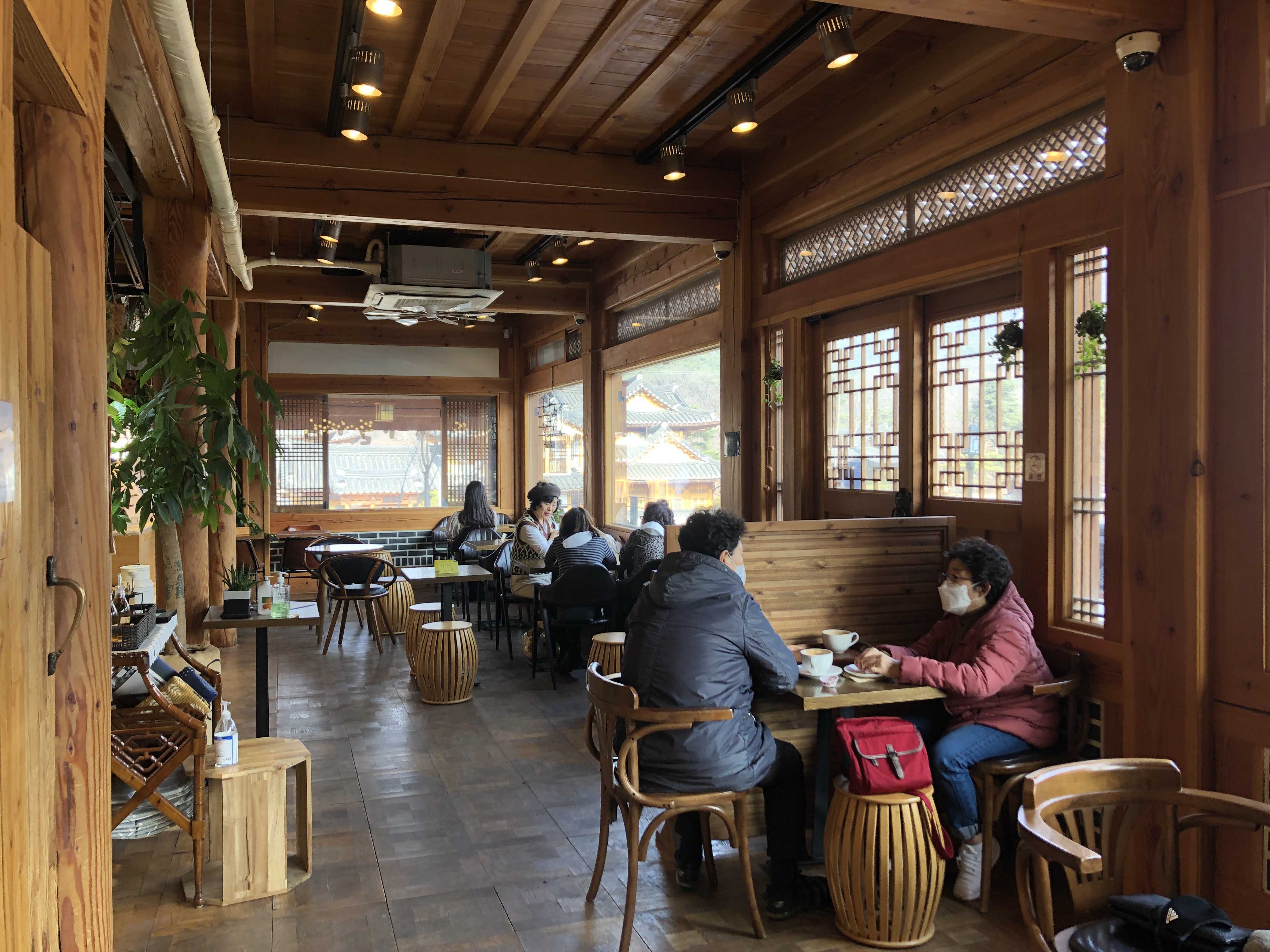 카페 볼가심은 외관뿐만 아니라 실내도 한옥의 멋을 한껏 살린 인테리어였다. 개인적으로 한옥 감성을 정말 좋아해서 매우 만족스러웠다. 평일임에도 불구하고 매장에 손님이 많았고 사회적 거리두기로 인해 비워두는 테이블 때문에 발걸음을 돌리는 사람들이 있었다. 하지만 우리는 운 좋게 좋은 자리에 앉을 수 있었다.