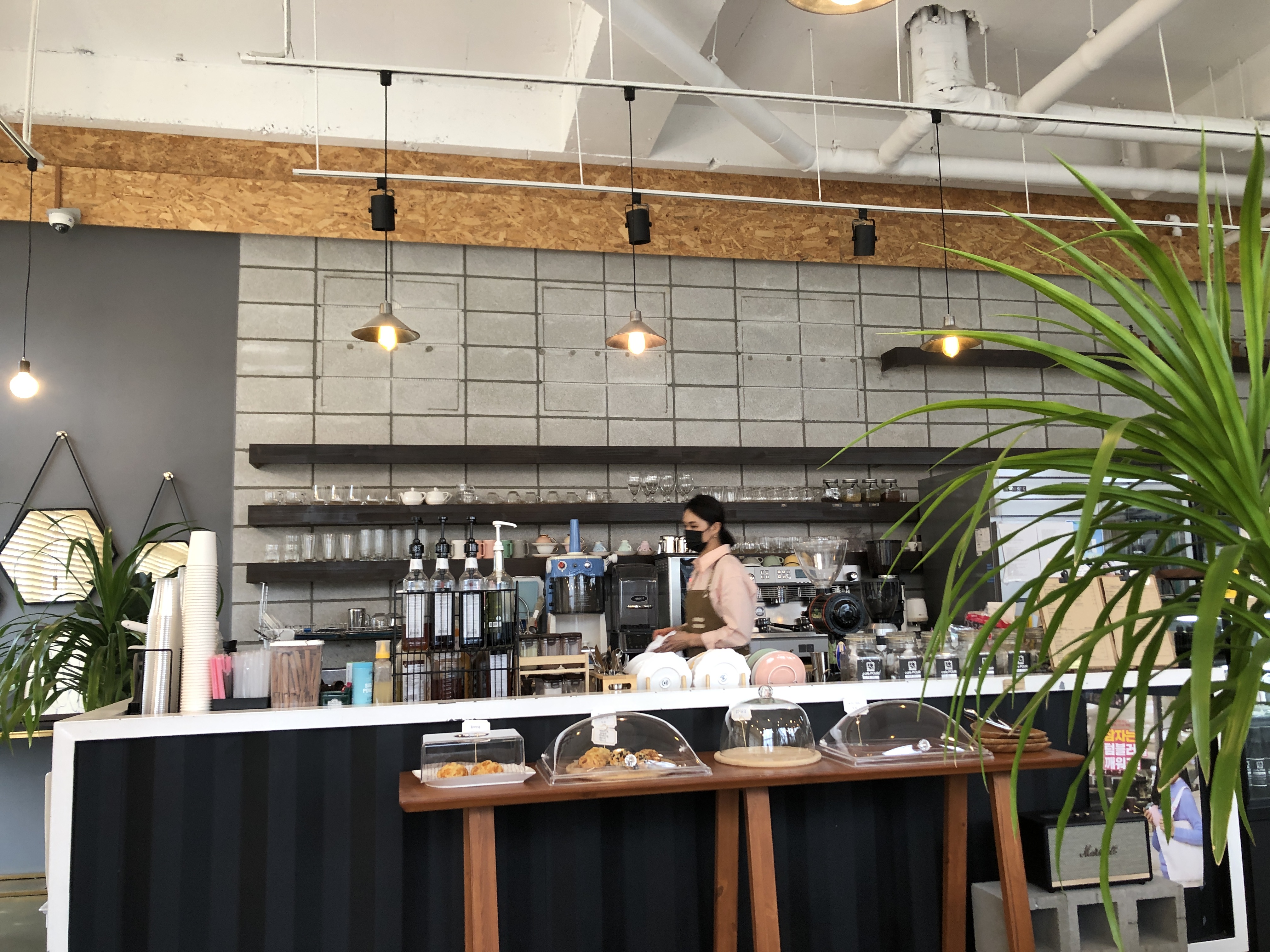 매장 안은 인테리어가 그레이 & 우드 & 화이트톤으로 매우 세련되고 예뻤다. 곳곳에 있는 식물들 때문에 킨포크 감성도 느껴졌다. 지금 사진으로 다시 보니 조명이 엄청 많았었다는 걸 깨달았다. 조명도 매우 예쁨!