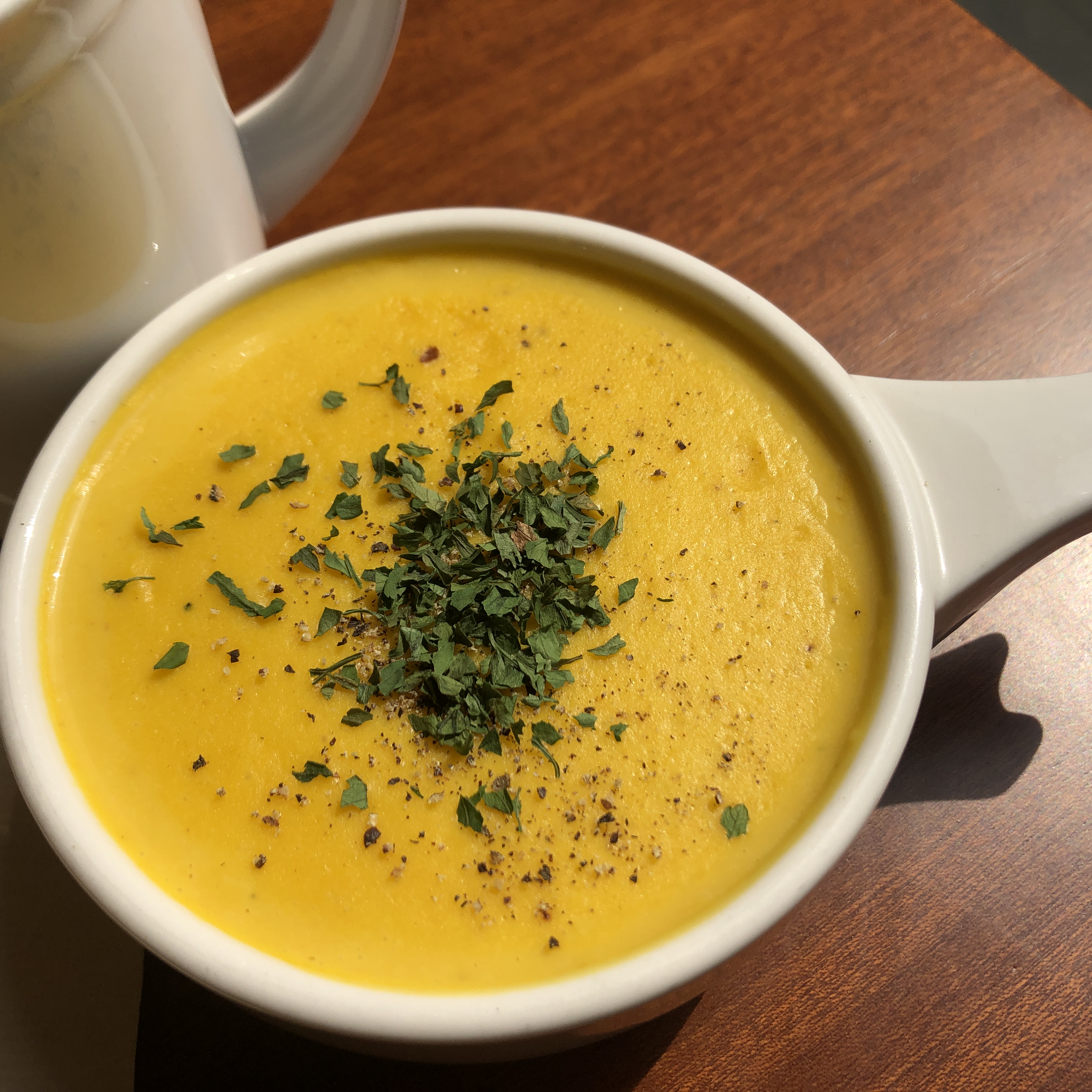 그리고 사이드 메뉴인 단호박 수프도 정말 맛있었습니다. 매장에서 직접 만든다는 단호박 수프는 색도 엄청 곱고 달달한 단호박과 양파가 조화로워 아주 맛있었습니다. 감칠맛도 어마어마해서 싹싹 긁어먹었습니다. 또 먹고 싶습니다. 그리고 커피는 크레마가 예뻤고 맛은 아주 무난했습니다.