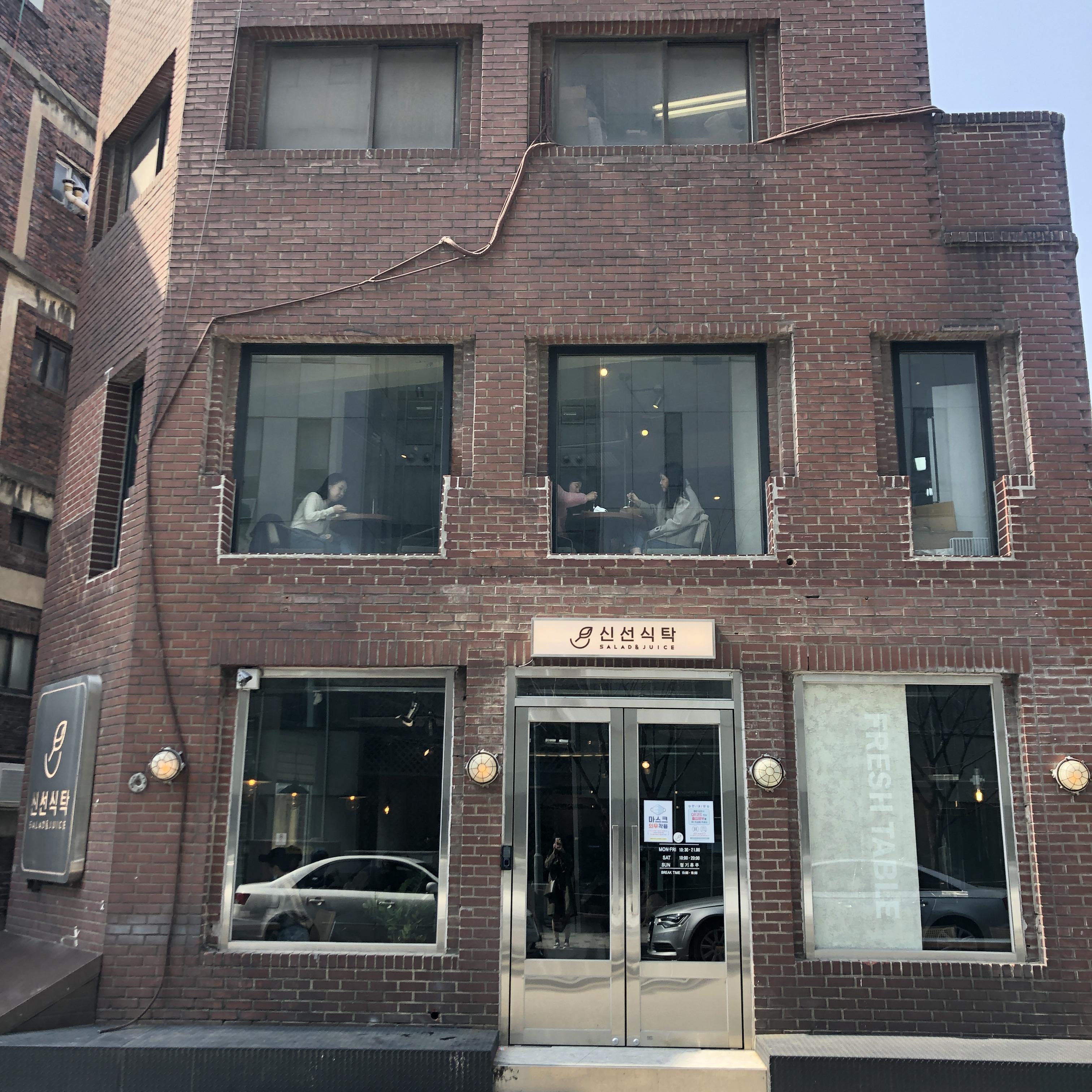 '신선식탁'이라는 샐러드 맛집을 방문하였습니다. 전부터 가보고 싶었던 곳입니다. 신선식탁은 벽돌 건물이고 2층으로 되어 있습니다. 주문은 1층에서 가능합니다.