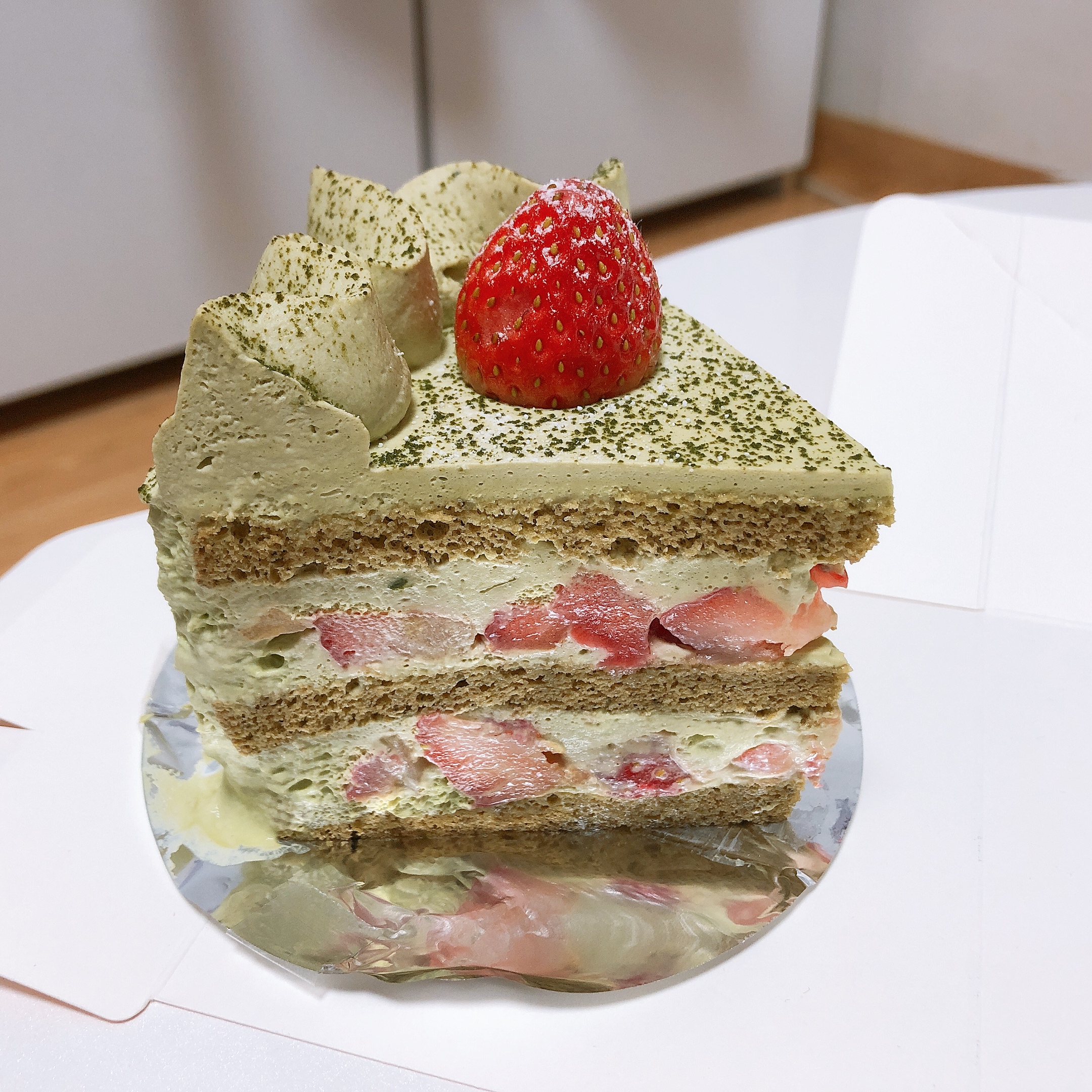 말차 딸기 케이크는 케이크 시트와 크림에서 모두 말차 맛이 납니다. 말차 크림 사이에 딸기도 잔뜩 들어 있어서 정말 맛있었습니다. 말차 딸기 케이크 가격은 8,000원이었습니다.