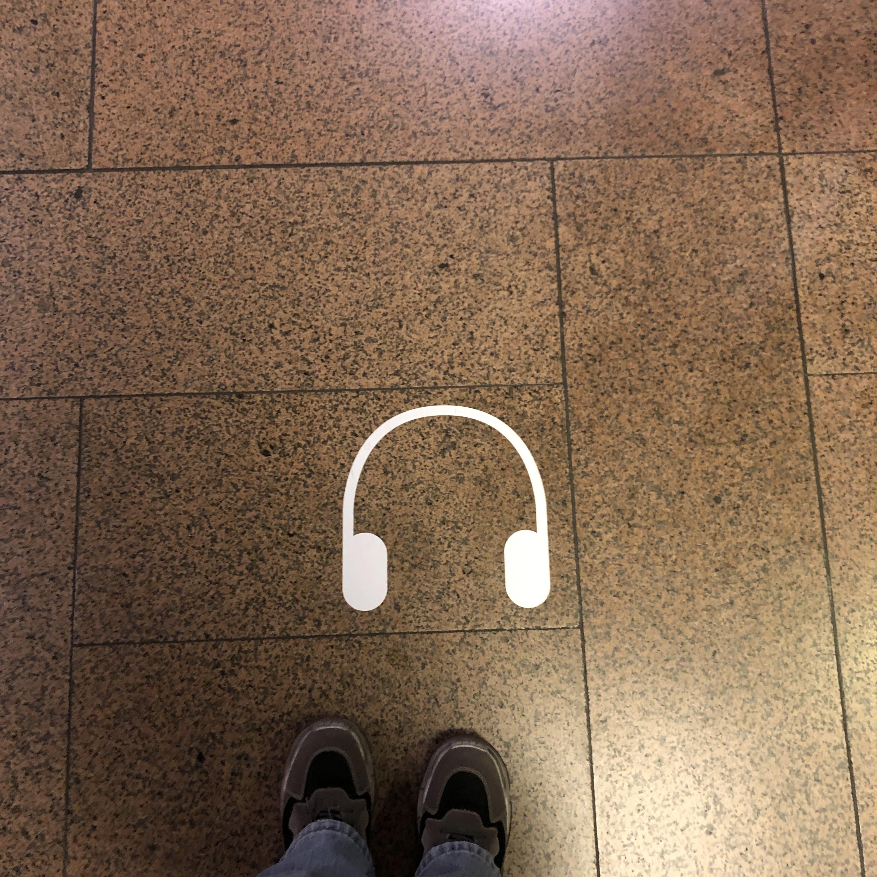 지도를 보고 1층, 2층, 지하 1층을 돌아다니다 보면 바닥에 하얀색 헤드셋 그림이 있습니다. 헤드셋 그림 근처에 도착하면 오디오가 흘러나옵니다. 배우의 목소리가 마치 제 귓속에 속삭이는 기분이 들었습니다. 지정된 장소마다 다른 사람의 목소리 나옵니다. 여러 명의 대화체가 아니고 한 사람의 목소리로 채워지는 독백입니다.